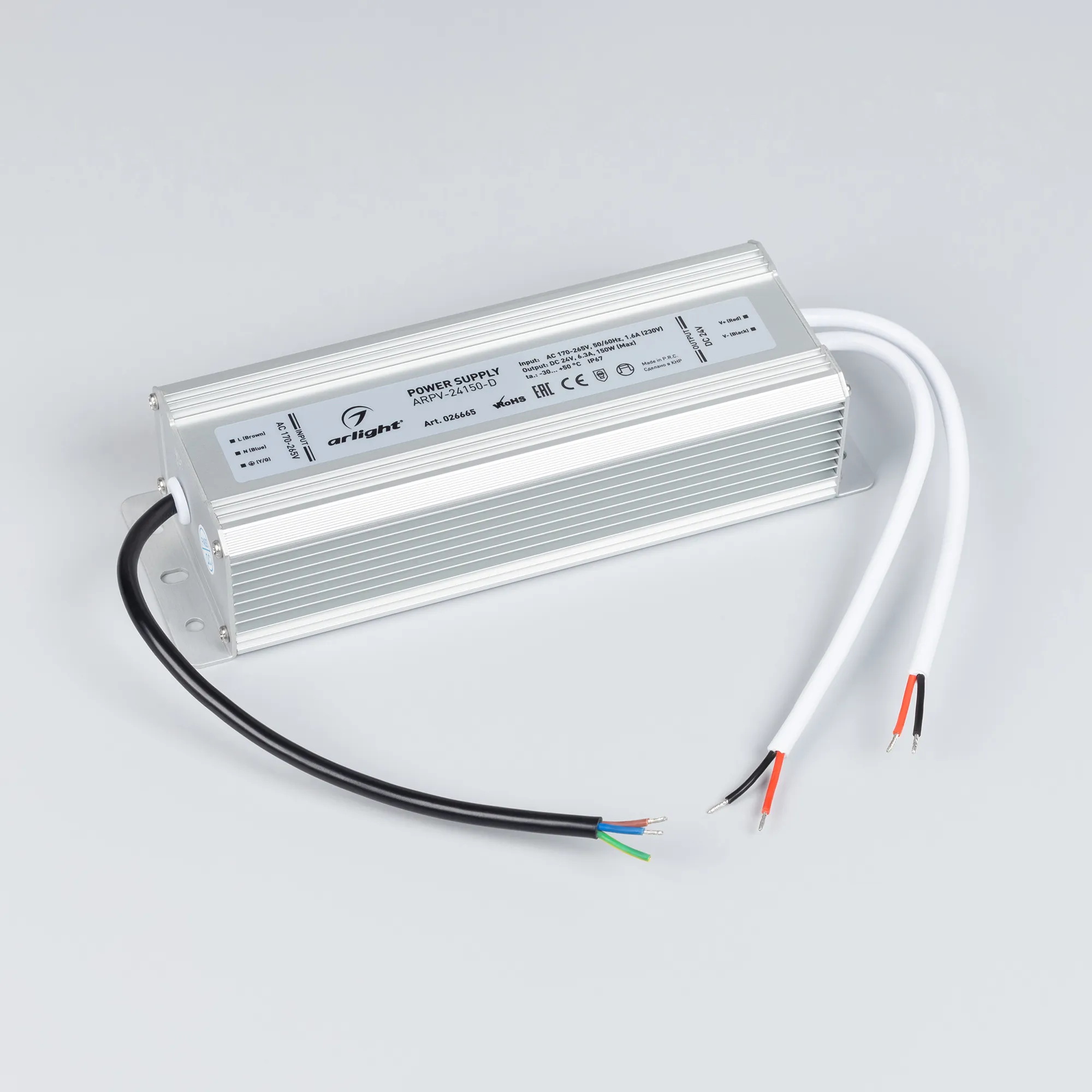 Источник напряжения с гальванической развязкой для светодиодных изделий. Входное напряжение 170-265 VAC. Выходные параметры: 24 В, 6.25 А, 150 Вт. Герметичный алюминиевый корпус IP 67. Рабочая температура -30…+50C⁰. Габаритные размеры длина 210 мм, ширина 71 мм, высота 46 мм. Гарантийный срок 3 года.