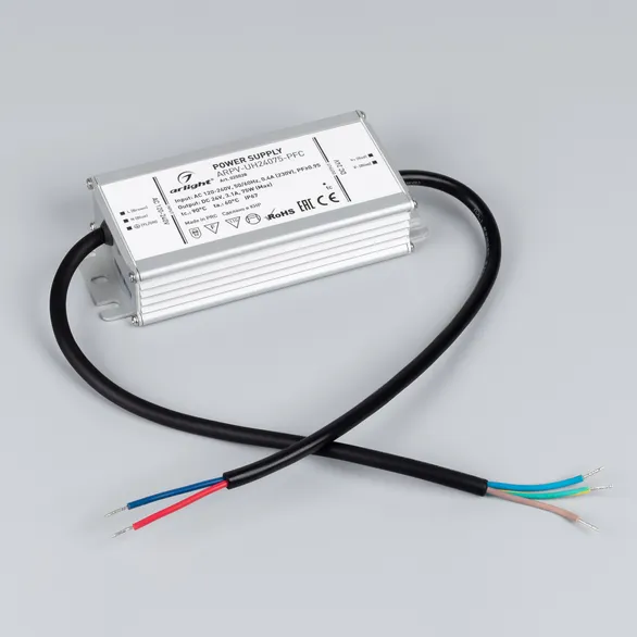 Источник напряжения с гальванической развязкой для светодиодных изделий. Входное напряжение 120-240 VAC. Выходные параметры: 24 В, 3.1 А, 75 Вт. Встроенный PFC >0,95. Герметичный алюминиевый корпус IP 67. Рабочая температура -40…+60C⁰.Габаритные размеры длина 158 мм, ширина 67.5 мм, высота 33.5 мм. (131x67.5x33.5 мм - без "ушей"). Гарантийный срок 7 лет.
