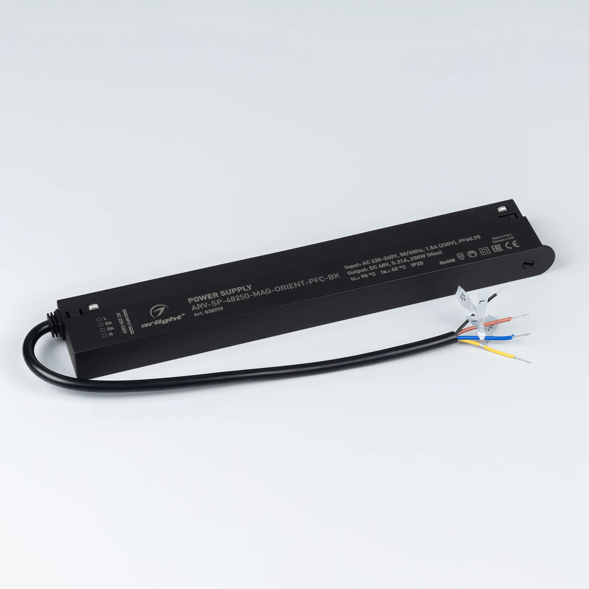 Источник напряжения с гальванической развязкой для магнитной системы. Входное напряжение 220-240 VAC. Выходные параметры: 48 В, 5.21 А, 250 Вт. Встроенный PFC >0,95. Сверхтонкий пластиковый корпус IP20. Рабочая температура -25…+40 C⁰. Габаритные размеры длина 268 мм, ширина 22 мм, высота 44 мм. Гарантийный срок 5 лет.