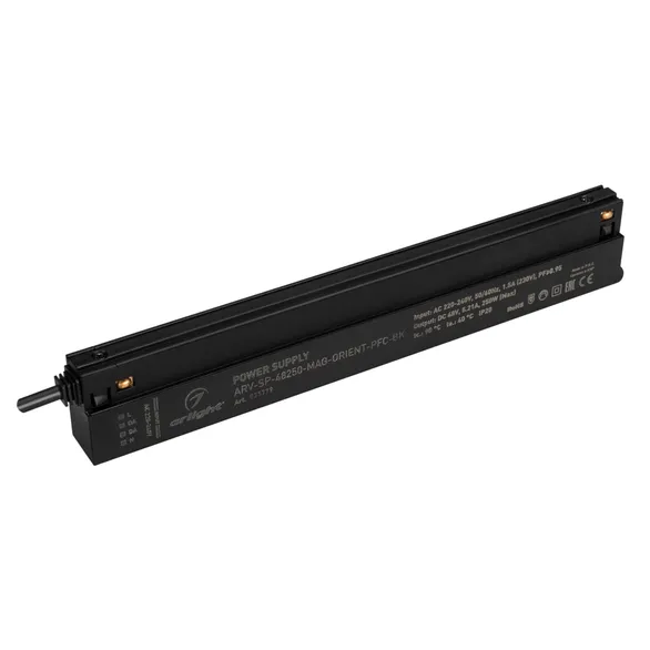 Источник напряжения серии ARV-MAG с гальванической развязкой применяется для работы в составе магнитной системы ORIENT. Эргономичный пластиковый корпус с покрытием "soft touch" устанавливается непосредственно в шинопровод и практически незаметен для потребителя. Для притязательных клиентов продукт оснащён магистральными проводами для шины DALI, которые можно использовать при необходимости. Эксплуатация только внутри помещений. Простой монтаж и технологичность - основные преимущества серии ARV-MAG.