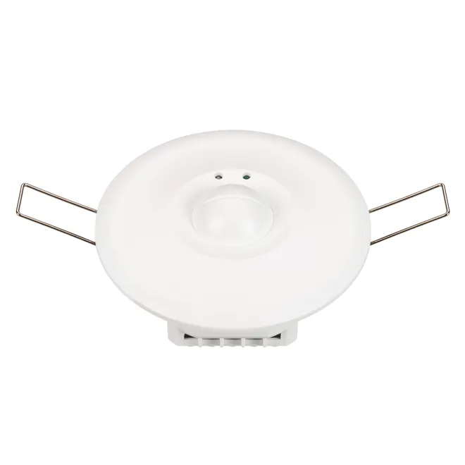 Микроволновый датчик движения предназначен для управления светодиодными лентами, лампами, светильниками и другими устройствами с напряжением питания 12-24 В. Позволяет включать и выключать свет при детекции движения. Совмещен с датчиком освещенности, что позволяет регулировать включение света в зависимости от степени освещения окружающего пространства. Использование принципа радиолокации обеспечивает высокую эффективность работы устройства. Срабатывает через двери, тонкие стены или перегородки. Датчик устанавливается на высоте 2-10 м, угол обнаружения составляет 360 градусов. Благодаря различным настройкам можно задать оптимальный режим работы освещения. Круглый компактный корпус легко встраивается в потолок или стену, выполнен со степенью защиты IP20 (для помещений, где отсутствует контакт с водой). Идеальное решение для экономии электроэнергии и увеличении срока службы источников света. Широко применяется в жилых, административно-хозяйственных, подсобных помещениях.