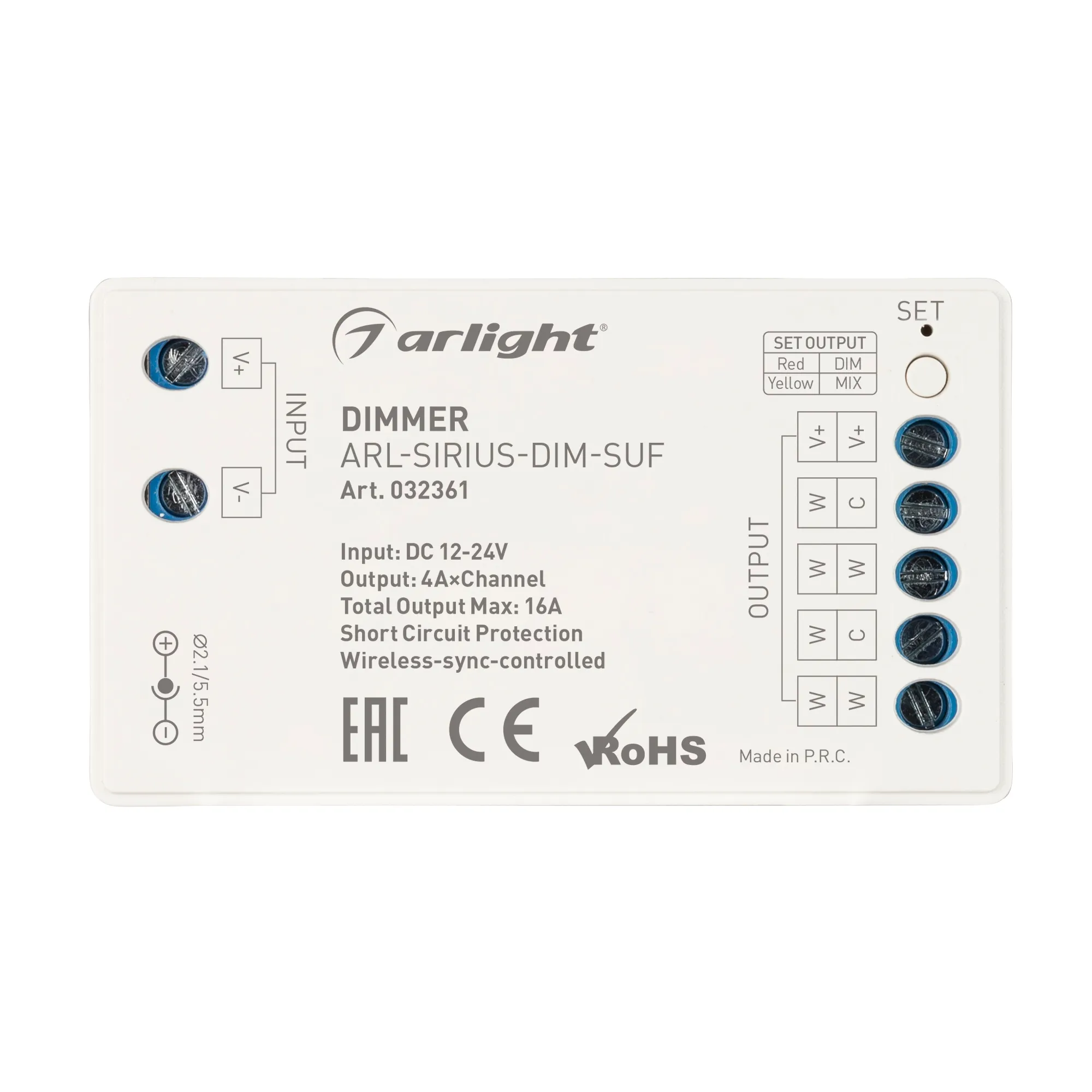 Контроллер для светодиодной DIM/MIX/RGB/RGBW ленты (ШИМ). Питание/рабочее напряжение 12-24VDC, максимальный ток 4A на канал, 4 канала, максимальная мощность 192-384W. Винтовые клеммы. Корпус - PVC. Габариты 70х40х20 мм. Список совместимых пультов в разделе "Совместимые".