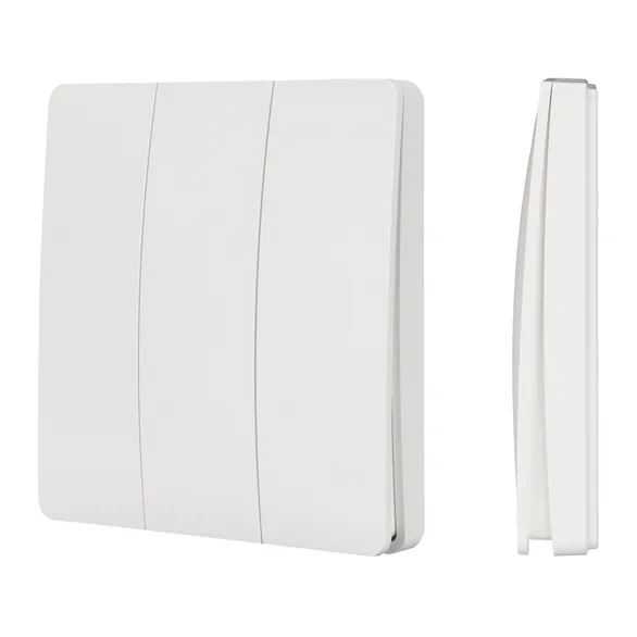Накладная 3-х клавишная белая пластиковая панель. Включение/выключение, диммирование трех групп света. Работает на частоте 433Мгц. Совместима с реле и диммерами серии TUYA-***-WF. Не требует питания, имеет встроенный кинетический источник питания. Защита IP67. Рабочая температура -20/+60 Дальность передачи в помещении / на улице - 30м/100м. Заменяется на 051685.