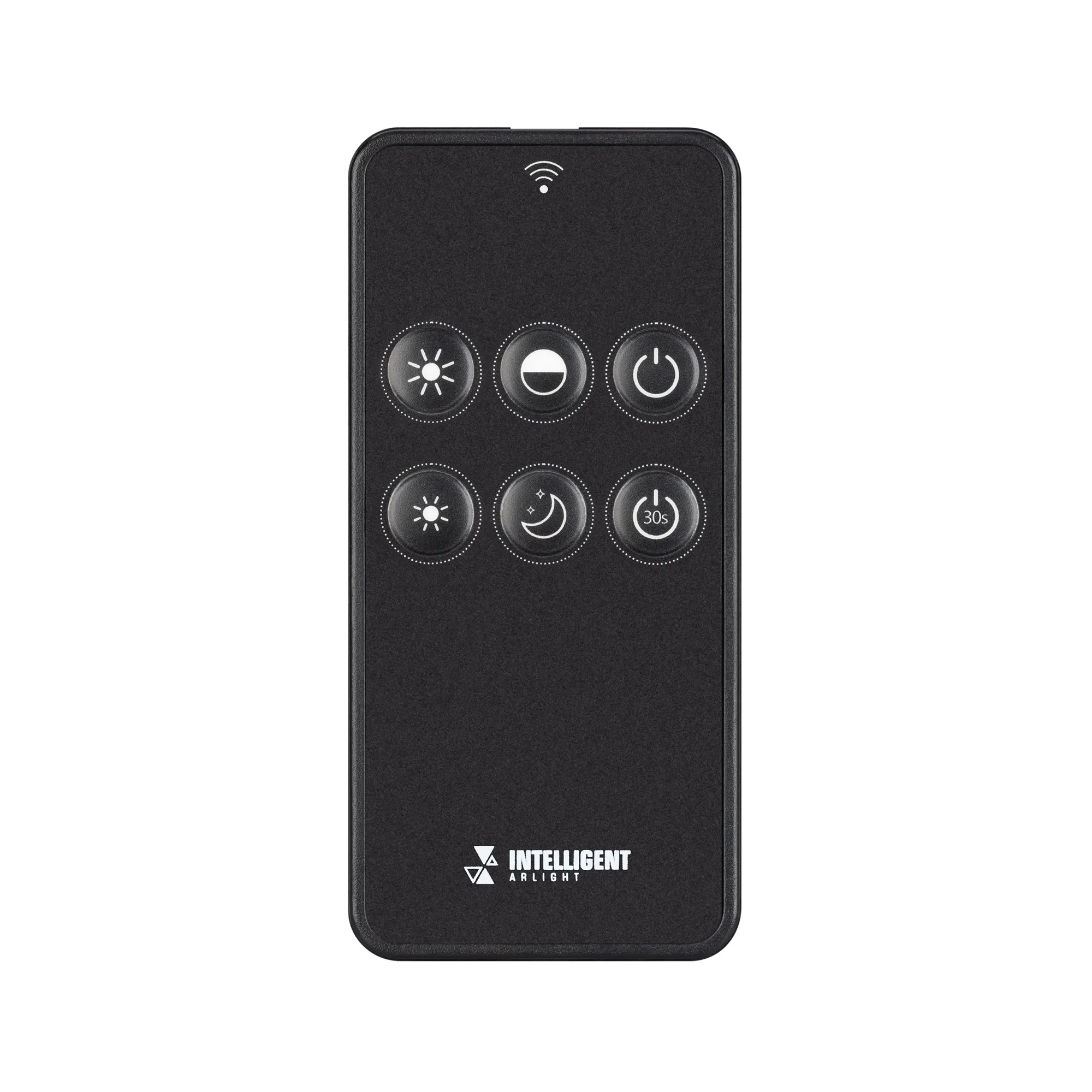 Кнопочный радиочастотный пульт черного цвета, предназначенный для управления одноцветными источниками света. Поддерживает основные функции: включение и выключение света, регулировку яркости, задержка выключения света. Устройство совместимо с диммерами и контроллерами серии SMART, поддерживающими управление по радиоканалу 2.4G. К одному пульту возможно привязать неограниченное количество диммеров и контроллеров. Устройство поддерживает 1 зону управления. Питание 3В осуществляется от батарейки CR2032. Корпус пульта выполнен из пластика, защищающего от загрязнения. Габариты устройства 100x47x8 мм.