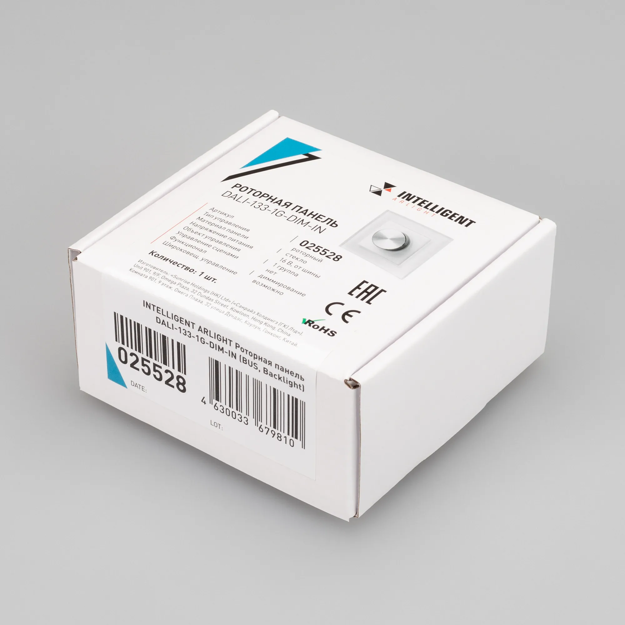 Встраиваемая стеклянная панель белого цвета с роторным вращателем (потенциометром), предназначенная для управления светодиодным или любым другим осветительным оборудованием, работающим в протоколе DALI. С помощью панели осуществляется регулировка яркости и включение/выключение света. Панель совместима с любыми исполнительными устройствами стандарта DALI. Установка номера группы или режима Broadcast выполняется переключателем на задней стороне панели. Питание устройства осуществляется от шины DALI, тип устройства DALI DT6. Установка адреса управления выполняется переключателями на корпусе. Габариты устройства составляют 80х80х40 мм, подсветка регулятора во включенном состоянии, установка в стандартный подрозетник. Панель совместима с декоративными рамками ведущих мировых производителей (GIRA, JUNG, BERKER, MERTEN). Стандартная рамка входит в комплект поставки.