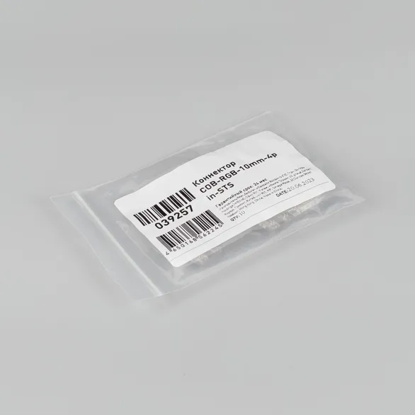Одиночный коннектор STS (лента-лента) для соединения двух отрезков открытых светодиодных RGB лент COB шириной 10 мм. Материал - прозрачный пластик. Обеспечивает соединение без видимых разрывов линии свечения. Максимальный допустимый ток 3 А, максимальное напряжение 24 В. Цена за 1 шт. Пакет 10 шт.