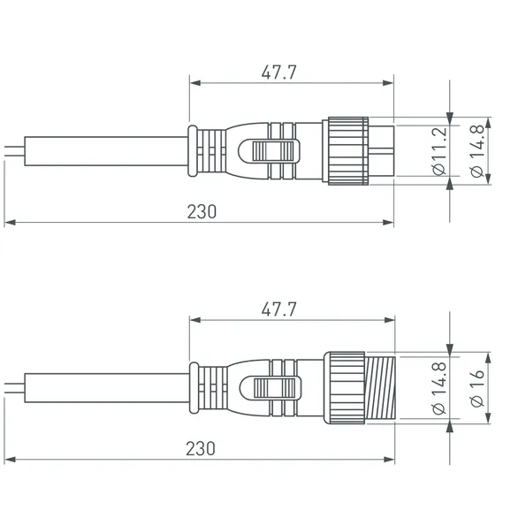 Коннектор подключения ARL-LINE-4pin предназначен для управления светодиодными прожекторами серии LINE с помощью протокола DMX512. Габариты разъёма DxH составляют Ø18х48мм, а длина разъёма с проводом - 230мм.