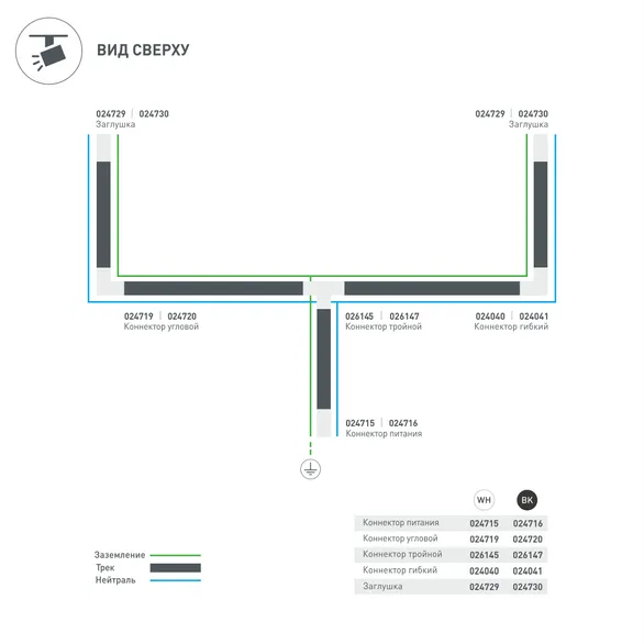 Угловой коннектор 90° LGD-4TR-CON-L-INT-BK (C) спитанием по внутренней стороне. При использовании с треками и аксессуарами другой серии возможно отличие по цвету.