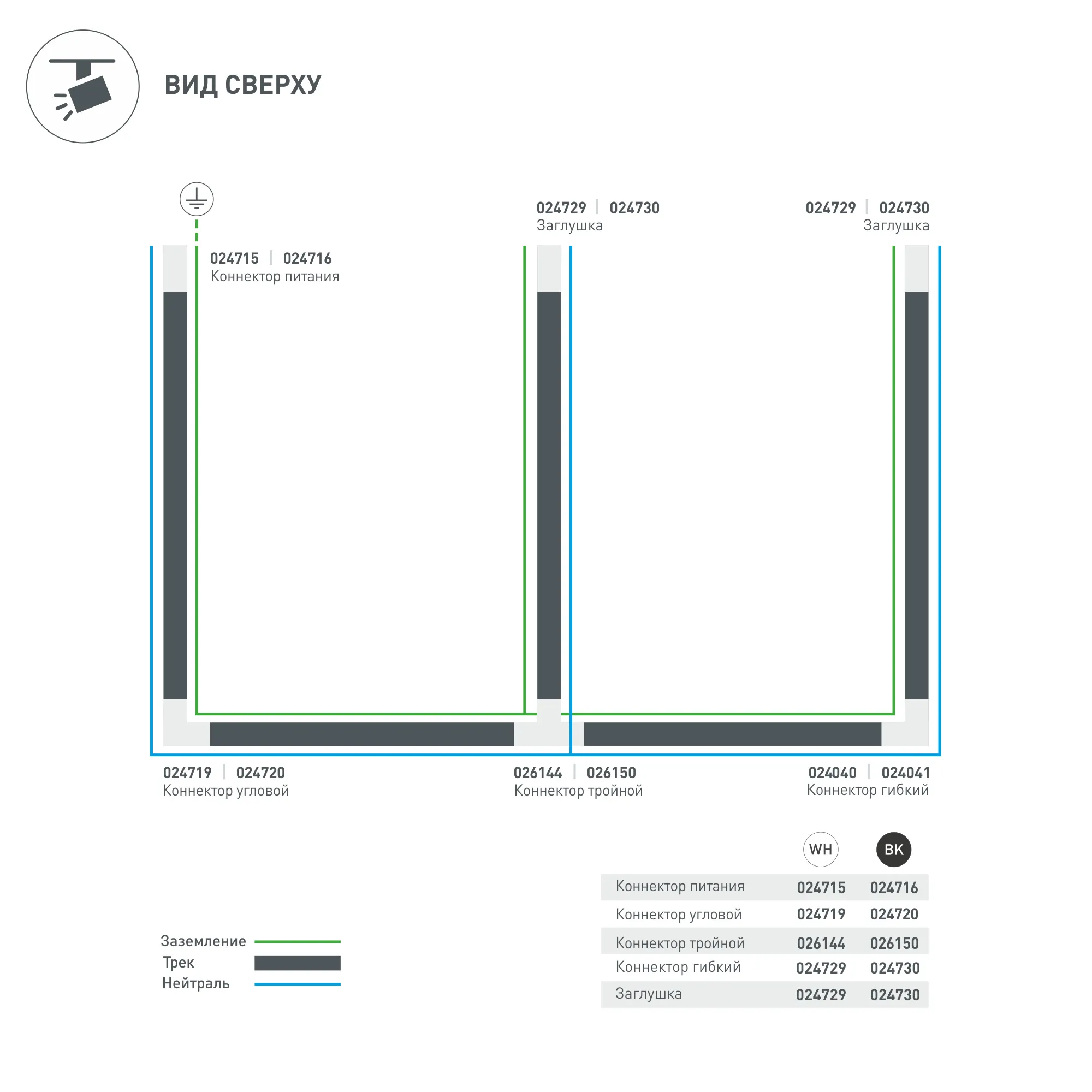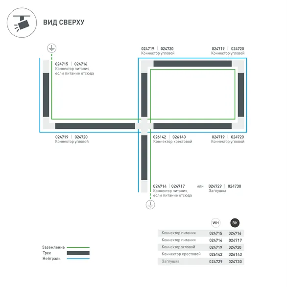 Угловой коннектор 90° LGD-4TR-CON-L-INT-WH (C) с питанием по внутренней стороне. При использовании с треками и аксессуарами другой серии возможно отличие по цвету.