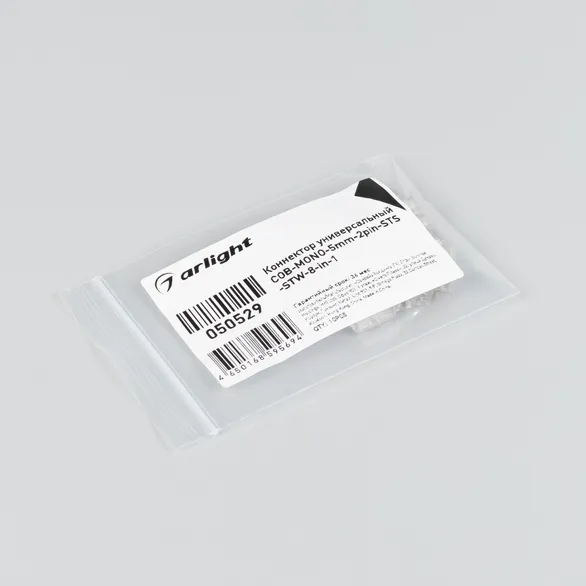 Универсальный коннектор для подключения открытых одноцветных лент COB шириной 5 мм. Обеспечивает подключение нескольких светодиодных отрезков (STS) и проводов без пайки (STW). Позволяет создать 8 типов соединений: прямое, угловое, Т - образное, крестовое, прямое подключение проводов, угловое с подключением питания, Т - образное с подключением питания, прямое с подключением питания. Цена за 1 шт. Пакет 10 шт.