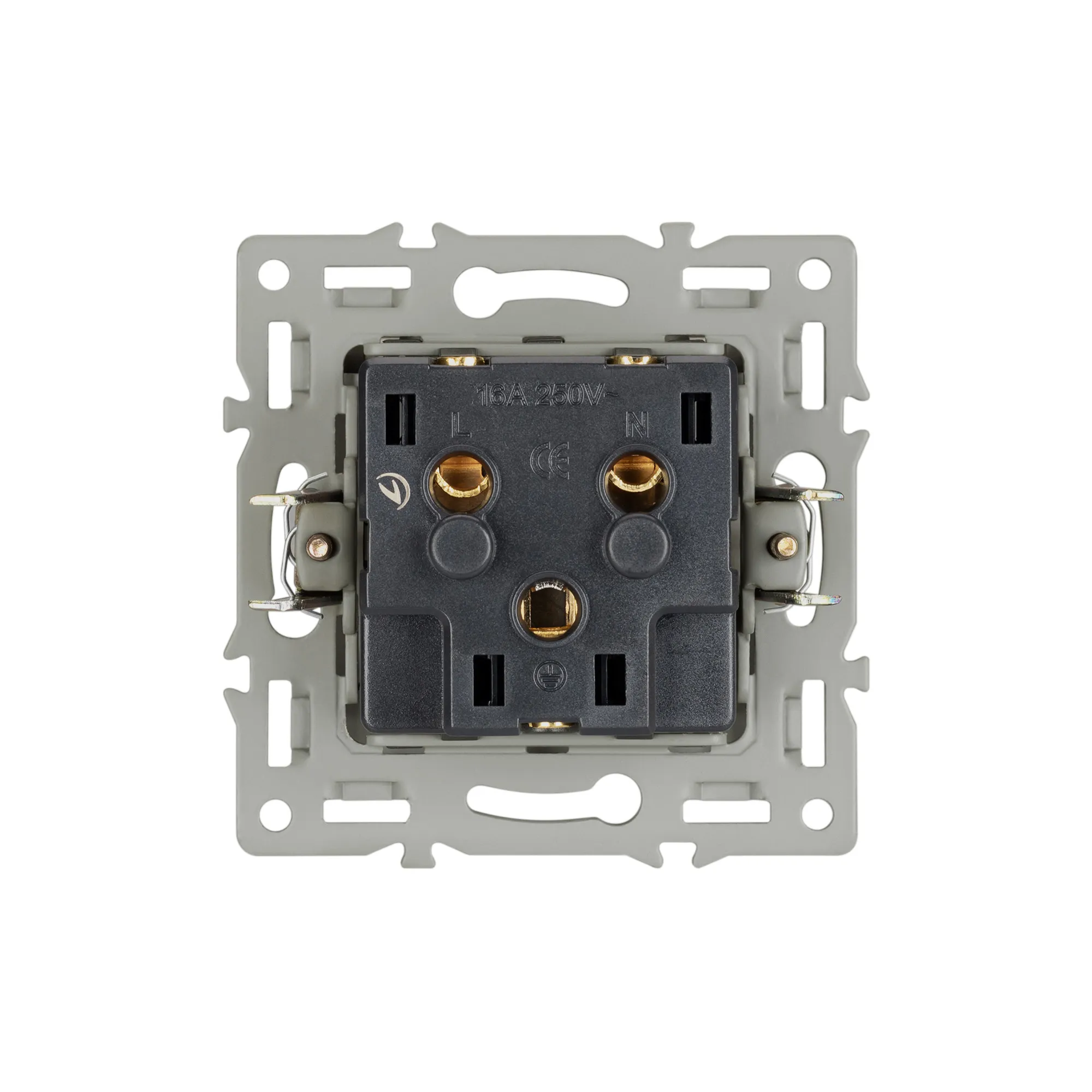 Механизм розетки с заземлением 1 пост, с суппортом из алюминия. Цвет - серый. Степень пылевлагозащиты - IP20.