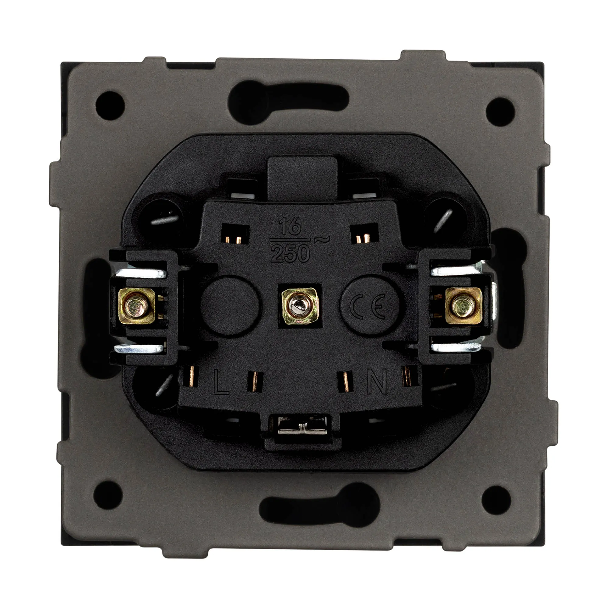 Металлический суппорт окрашен порошковой краской в несколько слоев и выполнен из металла толщиной 1,5мм, что обеспечивает безопасность и уверенность в установке. А усиленные распорные (монтажные) лапки надежно фиксируют механизм в стандартном установочном подрозетнике.