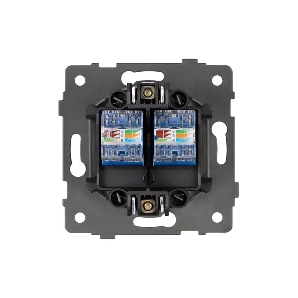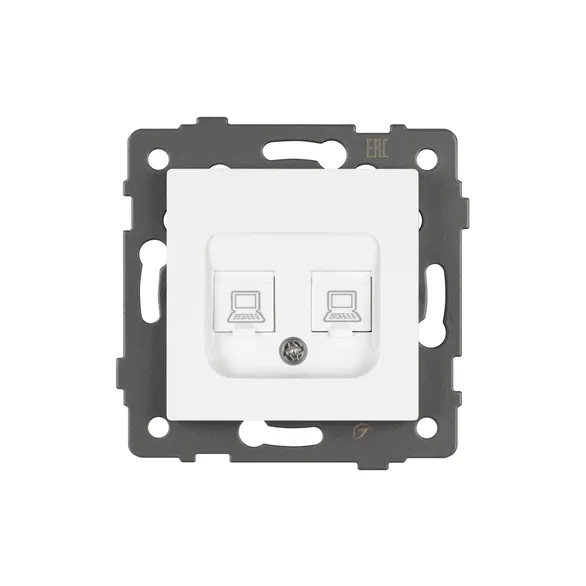 Механизм компьютерной розетки на 2 поста 6-й категории. Цвет - белый. Без фронтальной рамки. Уровень пылевлагозащиты IP20. Тип подключаемого разъема - Rj45. Розетка устанавливается в стандартный круглый подрозетник.