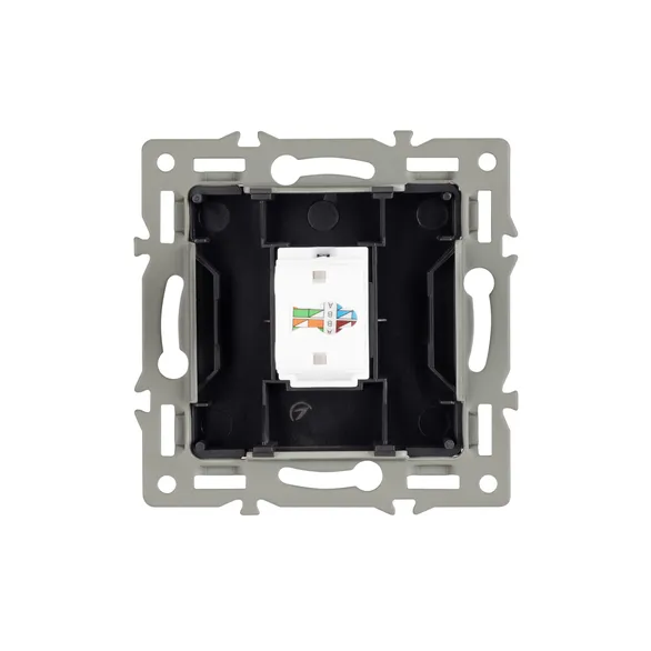 Механизм компьютерной розетки на 1 пост 6-й категории (CAT6), с суппортом из алюминия. Цвет - серый. Степень пылевлагозащиты - IP20.