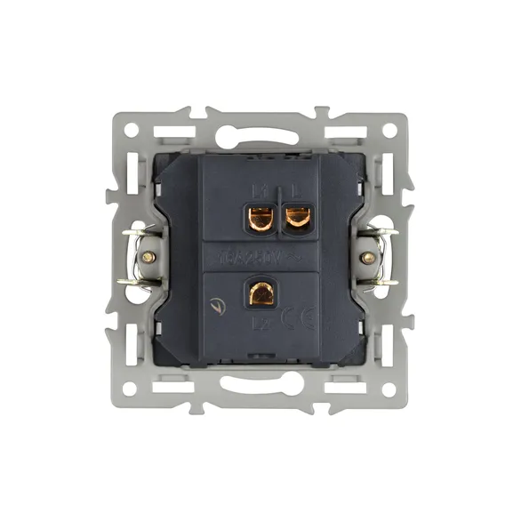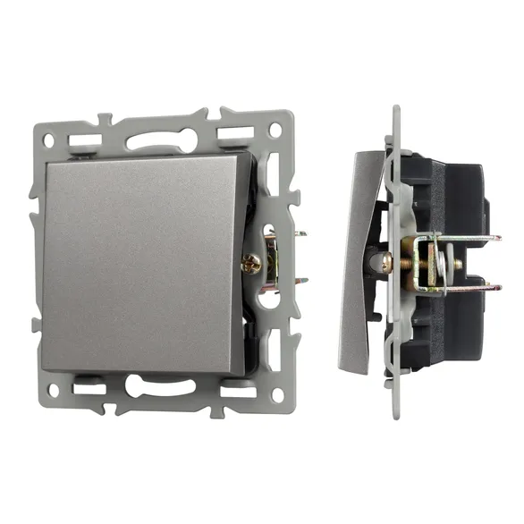 Механизм выключателя света одноклавишный на 1 пост, совместим с рамками серий VERSA/GLARE/PRESTO. Скрытый тип монтажа позволяет гармонично встроить в интерьер любого современного дизайн-проекта. Видимая часть механизма выполнена из высококачественного тугоплавкого пластика серого цвета. Контактная часть присоединяется при помощи винтовых зажимов, а усиленные монтажные лапки надежно фиксируют механизм в установочном подрозетнике. Степень защиты IP20 допускает использование устройства во влажных помещениях, с соблюдением требований эксплуатации.