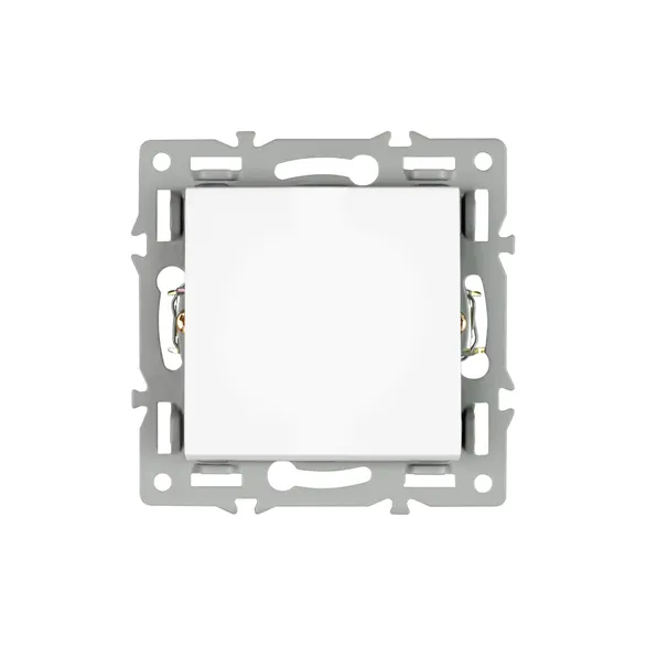 Механизм выключателя света одноклавишный на 1 пост, совместим с рамками серий VERSA/GLARE/PRESTO. Скрытый тип монтажа позволяет гармонично встроить в интерьер любого современного дизайн-проекта. Видимая часть механизма выполнена из высококачественного тугоплавкого пластика белого цвета. Контактная часть присоединяется при помощи винтовых зажимов, а усиленные монтажные лапки надежно фиксируют механизм в установочном подрозетнике. Проходная система подключения позволяет управлять системой включения и выключения света из двух разных точек.