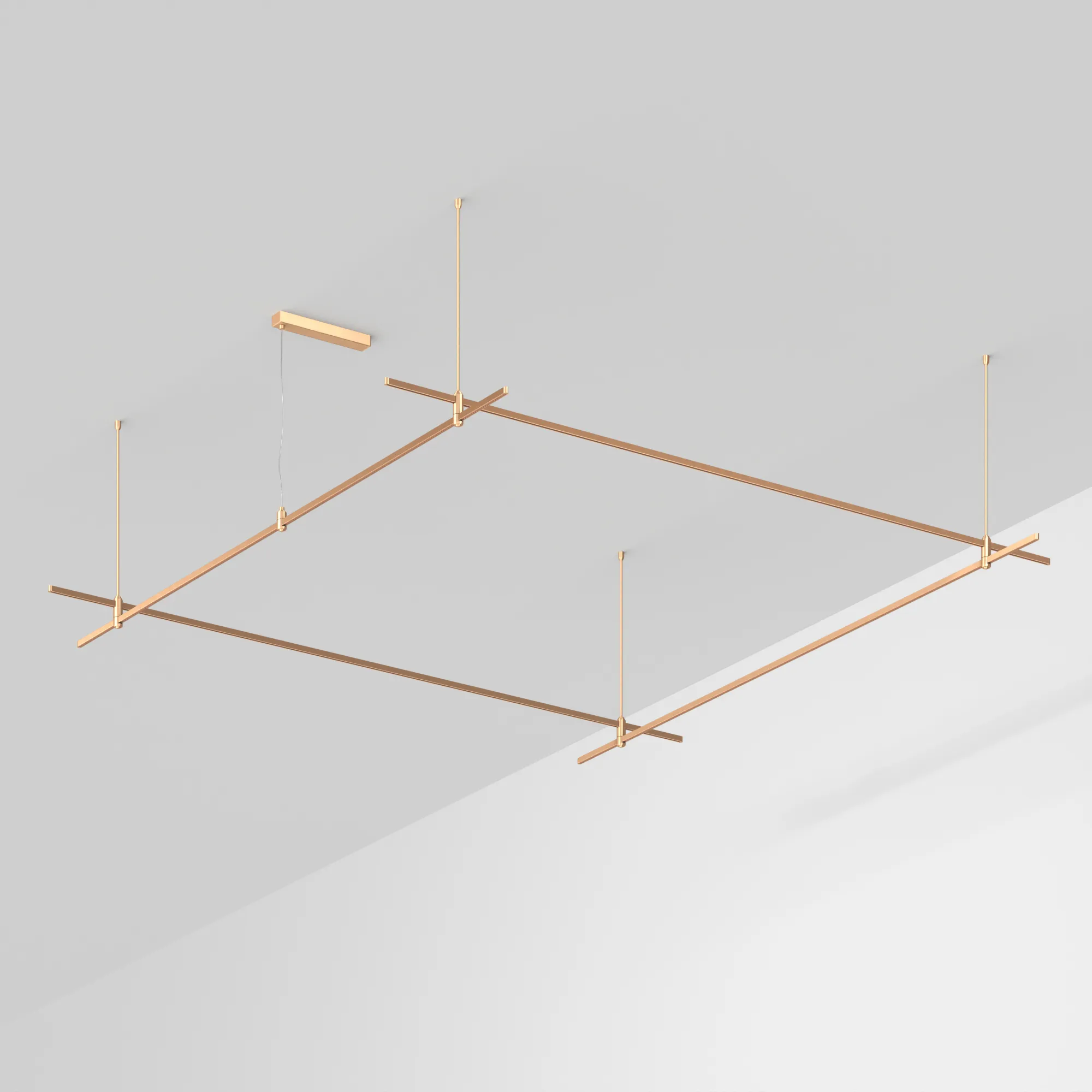 Подвесная конструкция APRIORI, форма квадрат. В комплекте треки с аксессуарами и жесткими подвесами длиной 800мм. DC48V. Материал алюминий, цвет светлое золото. Размер ДxШxВ: 3000x3000x22мм. Светильники и источники питания приобретаются отдельно.