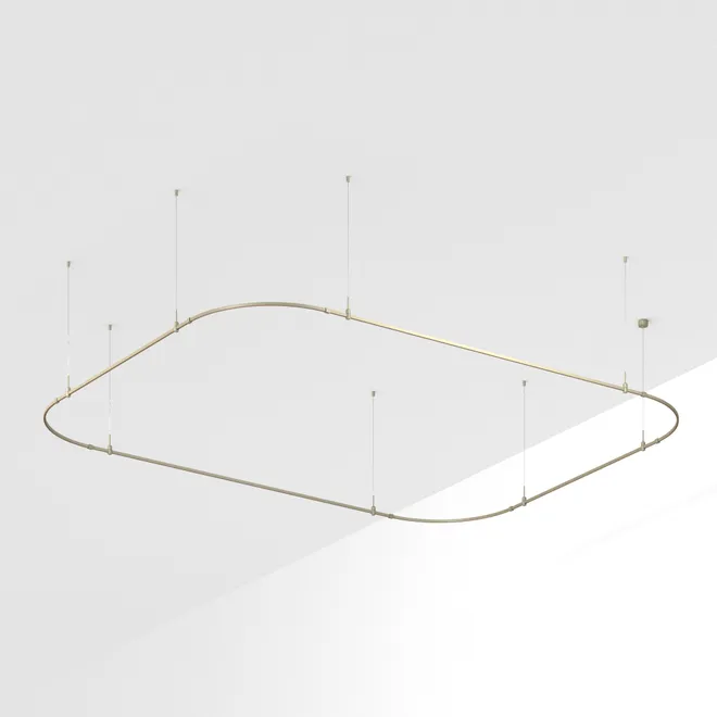 Подвесная конструкция APRIORI, форма закруглённый прямоугольник. В комплекте треки с аксессуарами и гибкими подвесами. DC48V. Материал алюминий, цвет серо-оливковый. Размер ДxШxВ: 4500x3500x22мм. Светильники и источники питания приобретаются отдельно.