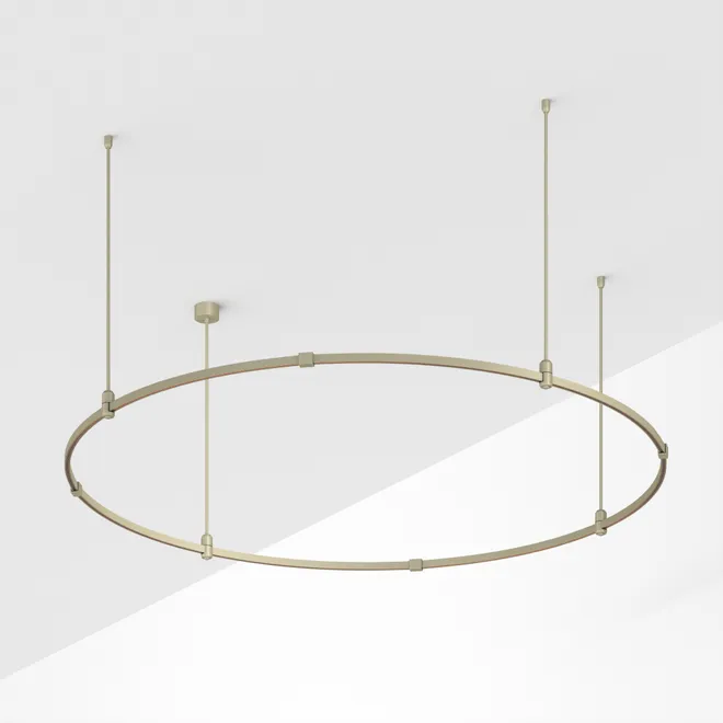 Подвесная конструкция APRIORI, форма круг. В комплекте треки с аксессуарами и жесткими подвесами длиной 800мм. DC48V. Материал алюминий, цвет серо-оливковый. Размер: диаметр 1800мм, высота 22мм. Светильники и источники питания приобретаются отдельно.