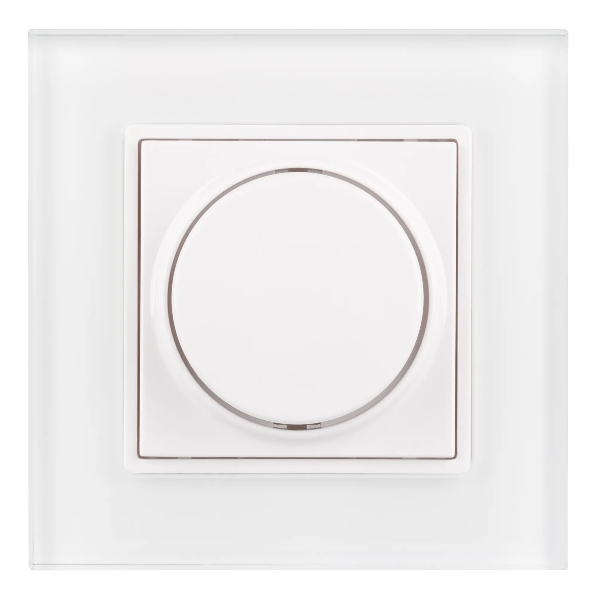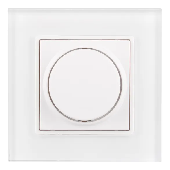Накладная роторная панель белого цвета для управления MIX-контроллерами серий SR, Excellent. Позволяет осуществлять включение/выключение источников света, реуглировку их яркости, управление цветовой температурой. Питание панели осуществляется от 3В батарейки CR2430. Габариты составляют 86x86x27 мм, корпус белого цвета, лицевая часть рамки панели - стекло. Изделие совместимо с рамками мировых производителей, в том числе, GIRA S-55, E2, Event, Esprit.