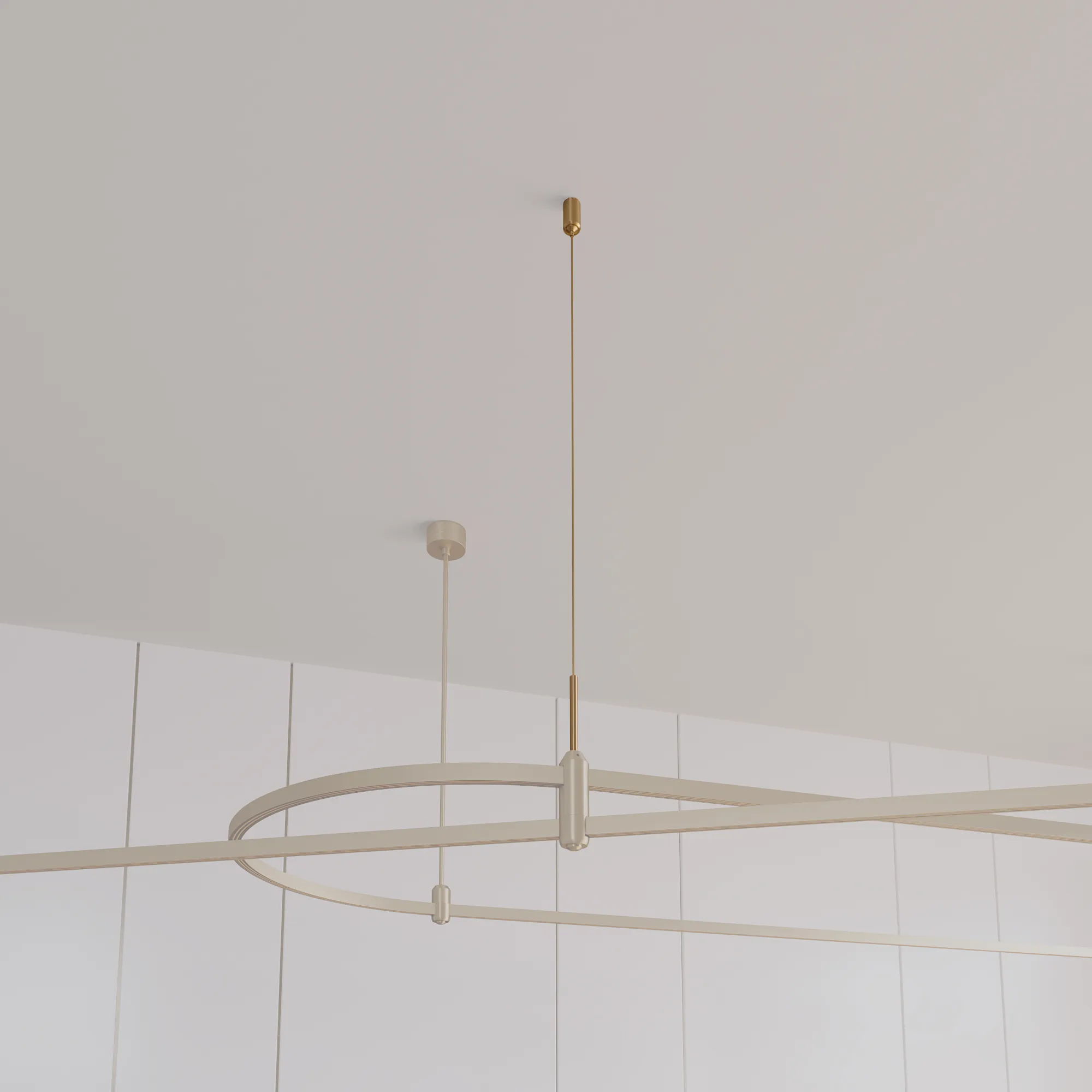 Подвес гибкий с регулируемым тросом для подвесного монтажа треков системы APRIORI. Тип крепления E. Не проводит электричество. Размер: Ø20 х 1500 х Ø10 мм. Материал алюминий, цвет светлое золото.