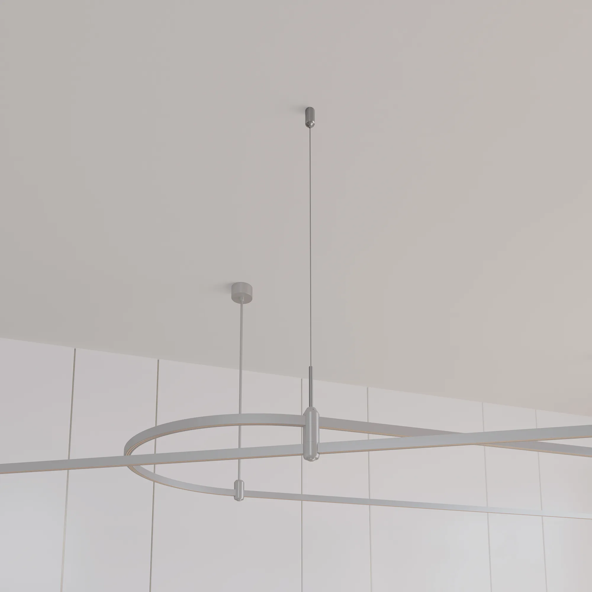 Подвес гибкий HANG-E-L1500 с регулируемым тросом длиной 1500 мм используется для подвесного монтажа треков системы APRIORI к потолку или другой поверхности. Минимальная высота подвеса 125 мм.