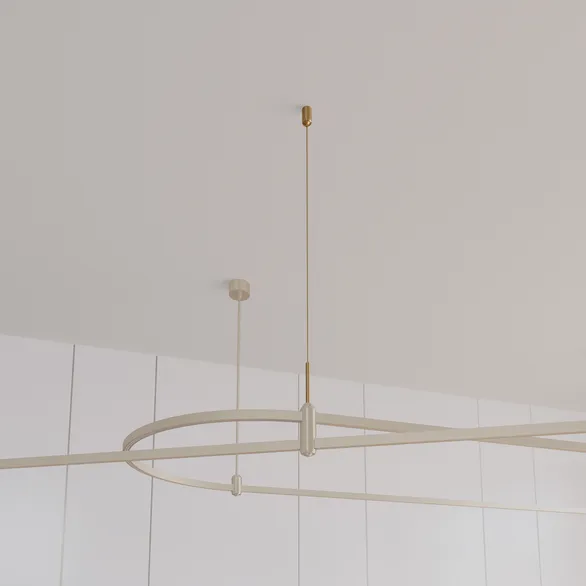 Подвес имеет тип нижнего крепления E. Совместим с держатель трека HOLDER-E. Не проводит электричество. Изготавливается из алюминия, анодированного в цвет светлое золото.