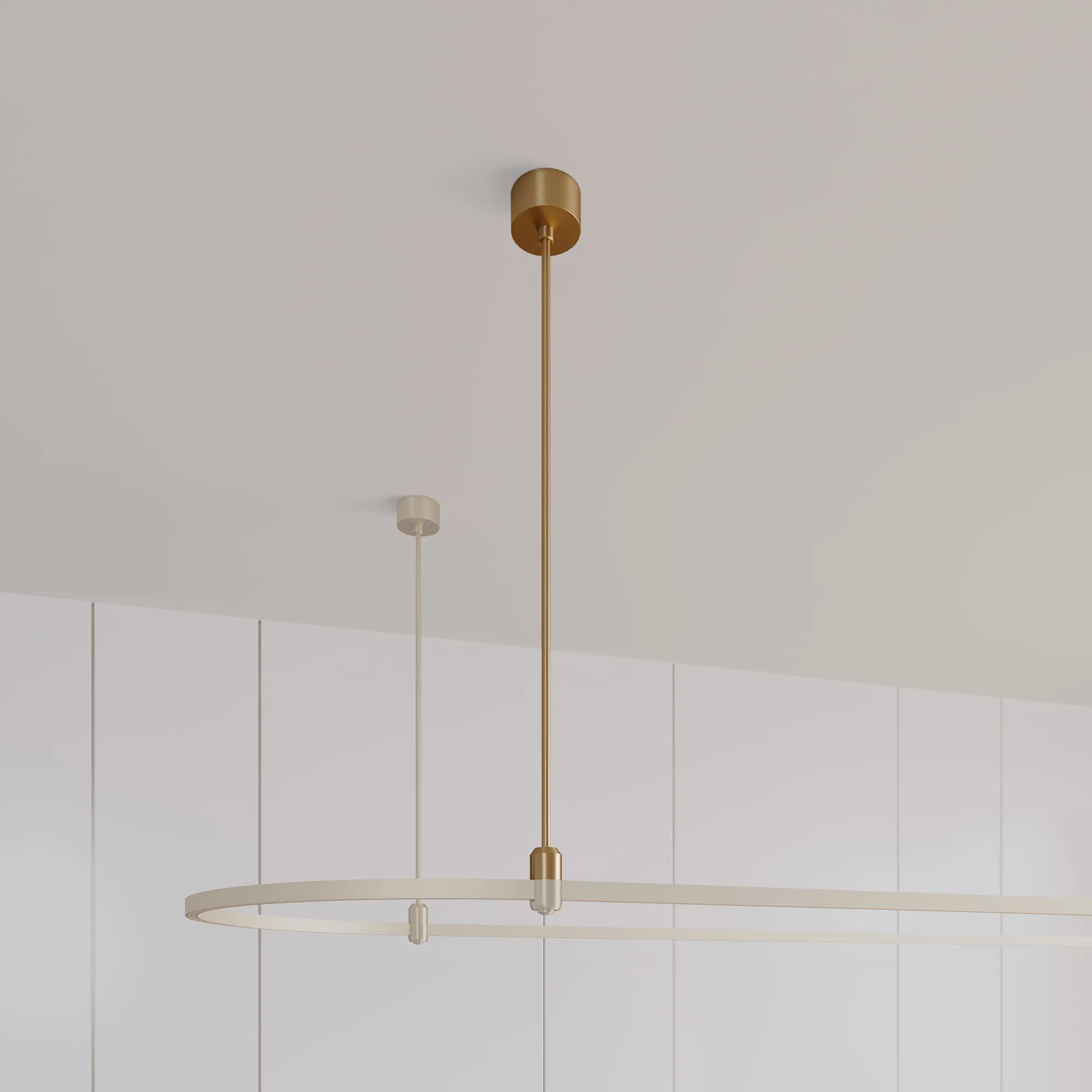 Подвес жесткий используется для крепления треков системы APRIORI к потолку или другой поверхности и подвода питания DC48V к системе. Подвес имеет тип крепления A. Изготавливается из алюминия, гальванизированного в цвет светлое золото. Диаметр чаши 80 мм, внутренний диаметр чаши 74мм, внешняя высота чаши 38 мм, глубина чаши до монтажного отверстия 25 мм, общая высота подвеса 365 мм.