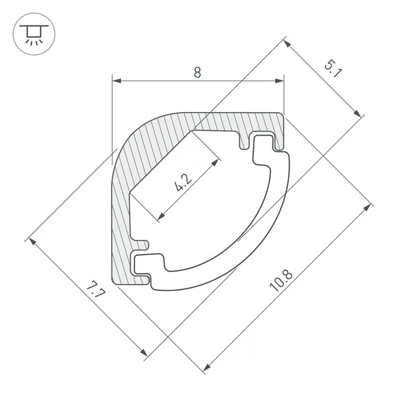 Угловой профиль из анодированного алюминия для подсветки мебели, ниш и других элементов интерьера. Скругленный угол профиля позволяет достичь высокой точности установки при любых неровностях. Габаритные размеры профиля составляют 2000 мм в длину, 8 мм в ширину и 8 мм в высоту. Площадка для установки светодиодных лент позволяет использовать ленту шириной до 4,2 мм и мощностью до 12 Вт/м. Это обеспечивает гибкость в выборе светодиодных лент и создает потрясающие световые решения.