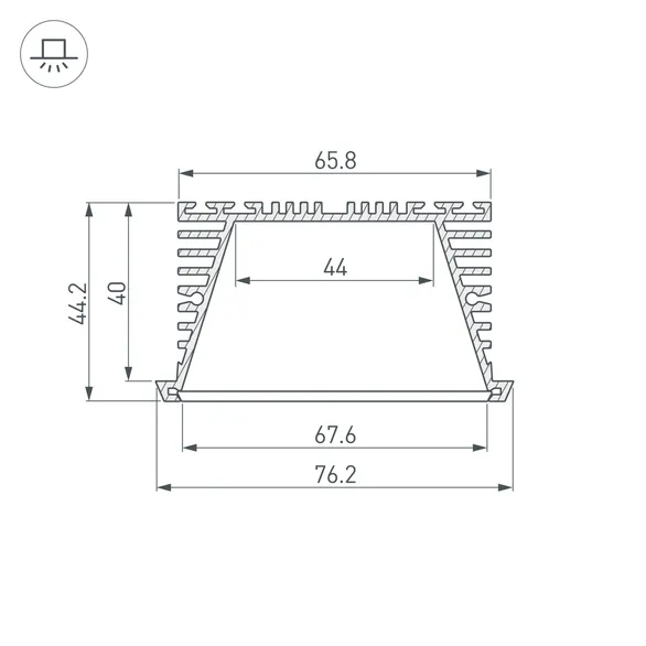 Габаритные размеры профиля составляют 2000 мм в длину, 76,2 мм в ширину и 44,2 мм в высоту. Площадка для установки светодиодных лент позволяет использовать ленту шириной до 44 мм и мощностью до 62,1 Вт/м. Это обеспечивает гибкость в выборе светодиодных лент и создает потрясающие световые решения.