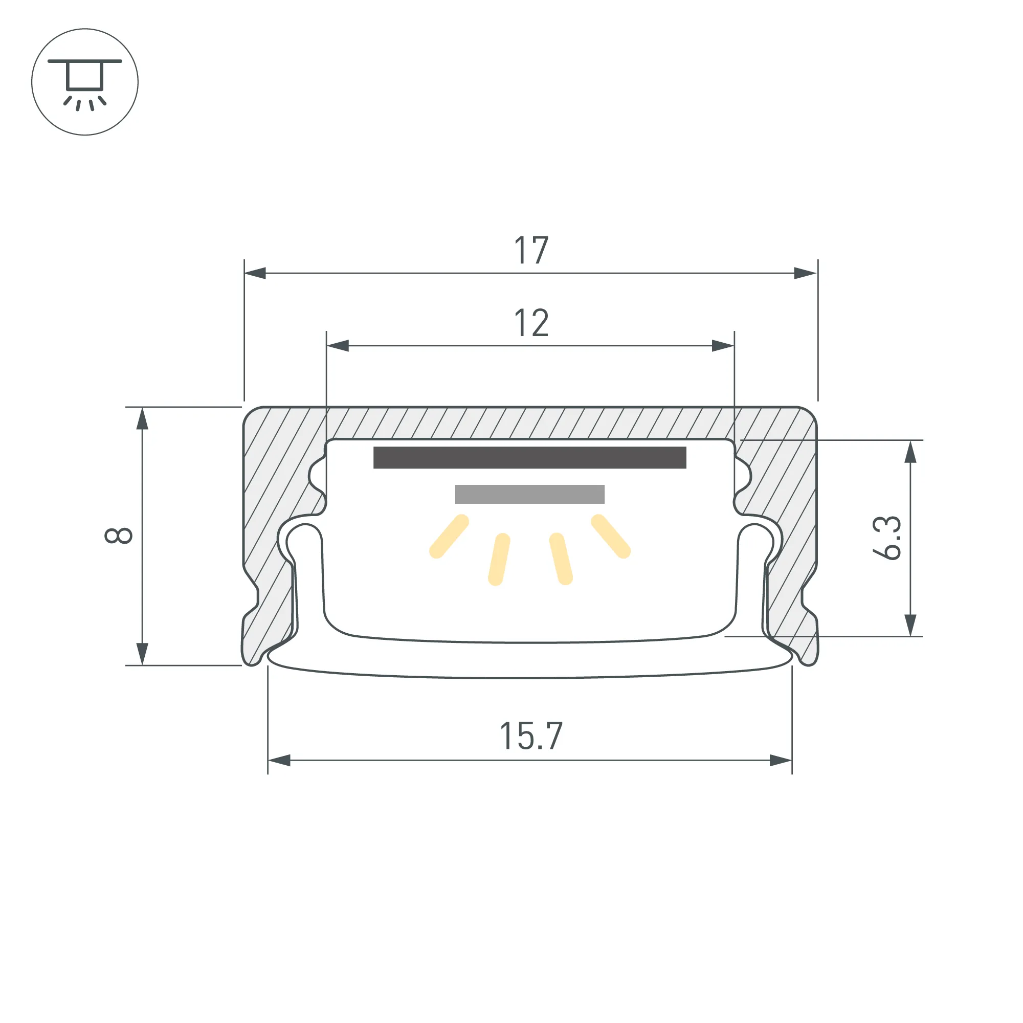 Накладной/подвесной профиль из анодированного алюминия черного цвета для контурной подсветки элементов интерьера. Габаритные размеры профиля составляют 2000 мм в длину, 17 мм в ширину и 8 мм в высоту. Площадка для установки светодиодных лент позволяет использовать ленту шириной до 12 мм и мощностью до 13 Вт/м. Это обеспечивает гибкость в выборе светодиодных лент и создает потрясающие световые решения.