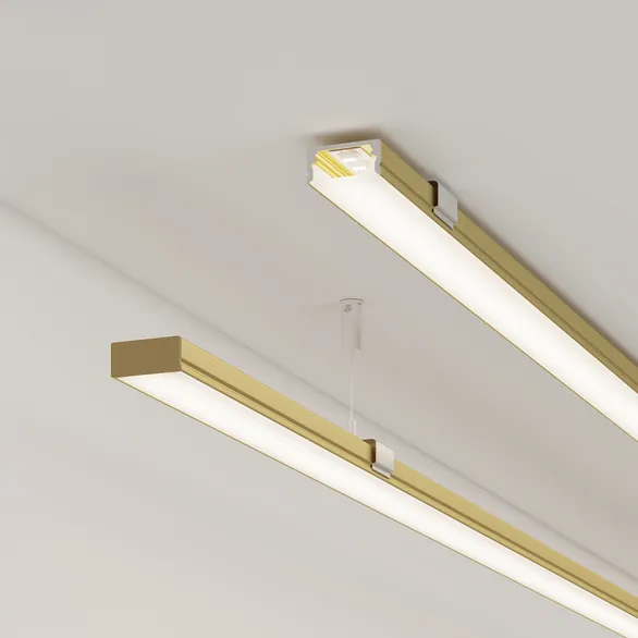 Накладной/подвесной профиль из анодированного алюминия золотистого цвета для контурной подсветки элементов интерьера. Габаритные размеры профиля составляют 2000 мм в длину, 17 мм в ширину и 8 мм в высоту. Площадка для установки светодиодных лент позволяет использовать ленту шириной до 12 мм и мощностью до 13 Вт/м. Это обеспечивает гибкость в выборе светодиодных лент и создает потрясающие световые решения.