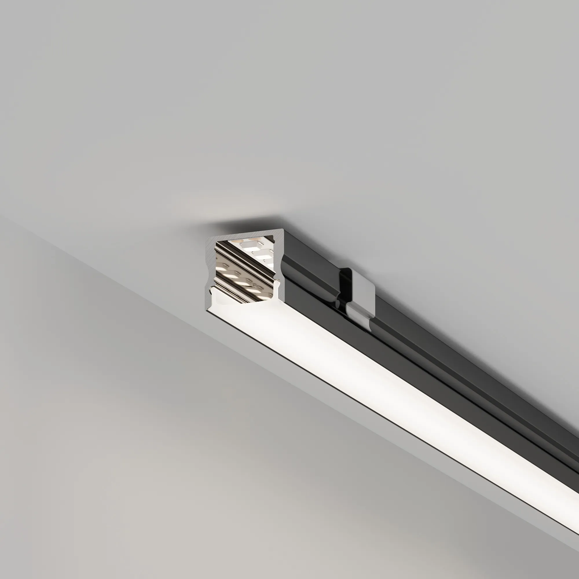 Накладной/подвесной профиль из анодированного алюминия черного цвета для контурной подсветки элементов интерьера. Габаритные размеры профиля составляют 2000 мм в длину, 17 мм в ширину и 14,5 мм в высоту. Площадка для установки светодиодных лент позволяет использовать ленту шириной до 12 мм и мощностью до 16,5 Вт/м. Это обеспечивает гибкость в выборе светодиодных лент и создает потрясающие световые решения.