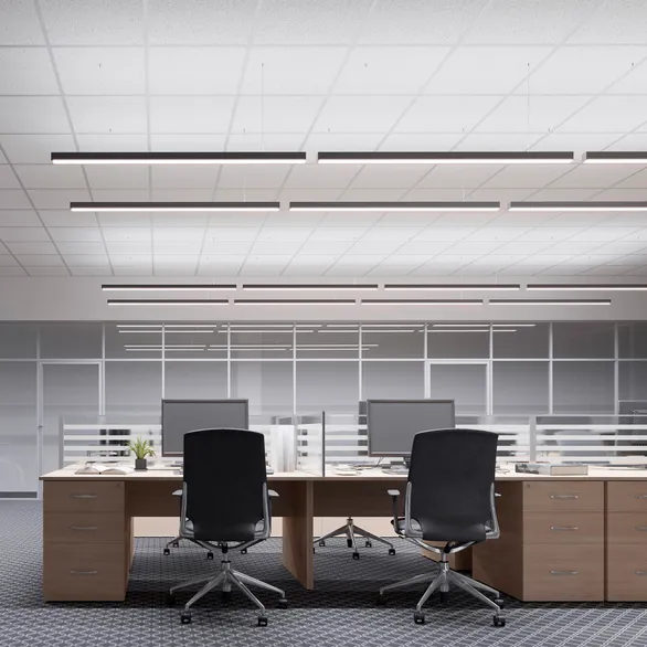 Подвесной профиль из анодированного алюминия с двусторонним свечением вверх-вниз для основного и акцентного освещения.