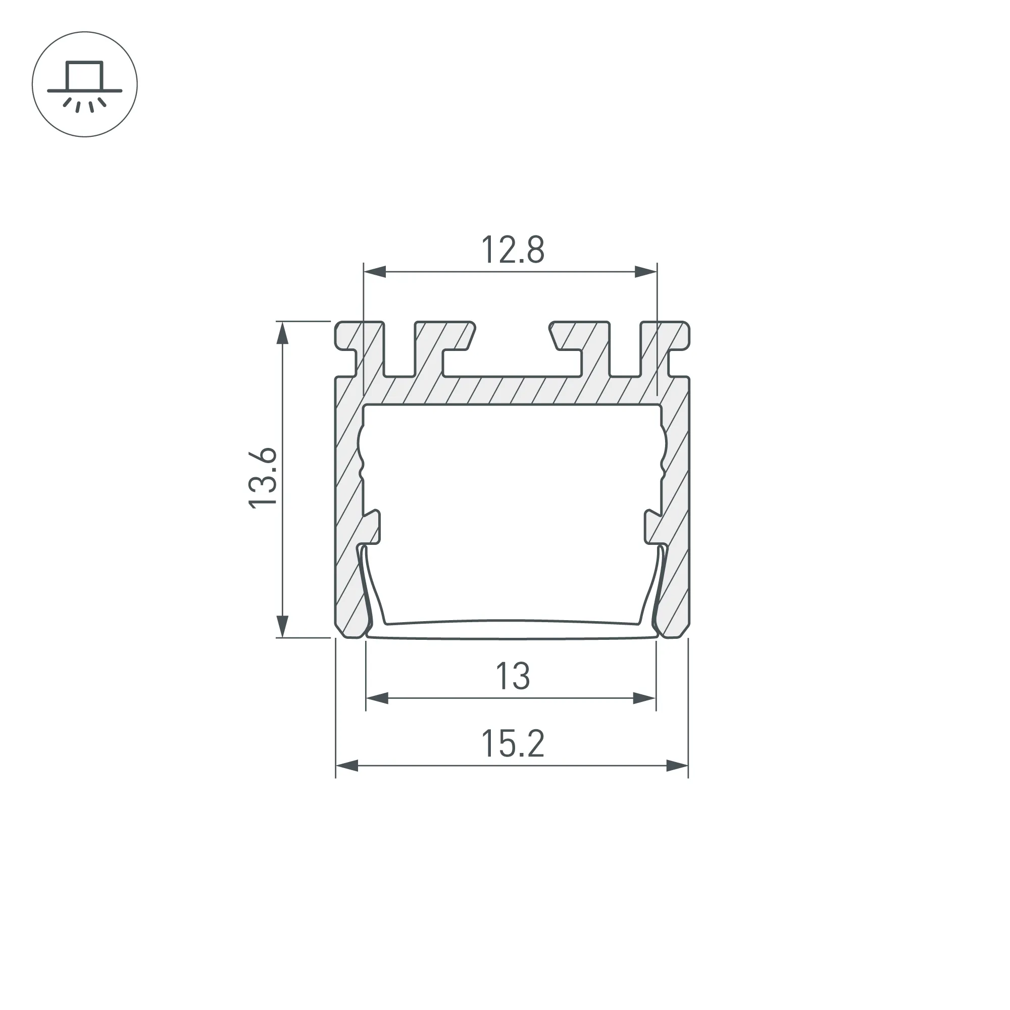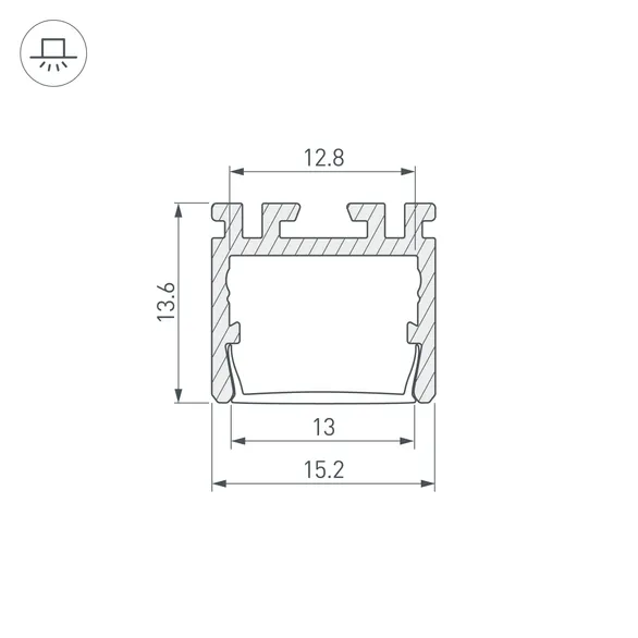 Габаритные размеры профиля составляют 2000 мм в длину, 15,2 мм в ширину и 13,6 мм в высоту. Площадка для установки светодиодных лент позволяет использовать ленту шириной до 12,8 мм и мощностью до 14,9 Вт/м. Это обеспечивает гибкость в выборе светодиодных лент и создает потрясающие световые решения.
