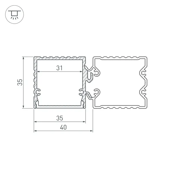 Накладной профиль из анодированного алюминия в комплекте с матовым призматическим рассеивателем "антиблик" из поликарбоната со светопропусканием 60% для декоративной подсветки. Устанавливается на основание ALU-BASE Small/Hiding (приобретается отдельно). Габаритные размеры профиля составляют 2000 мм в длину, 40 мм в ширину и 35 мм в высоту. Площадка для установки светодиодных лент позволяет использовать ленту шириной до 31 мм и мощностью до 37 Вт/м. Это обеспечивает гибкость в выборе светодиодных лент и создает потрясающие световые решения.