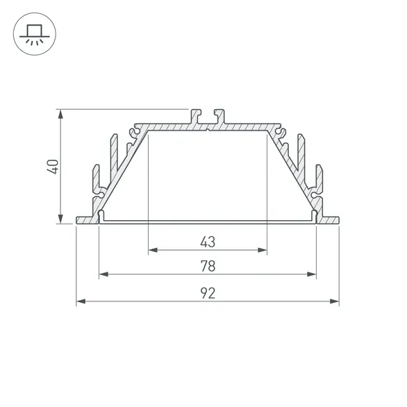 Габаритные размеры профиля составляют 2000 мм в длину, 92 мм в ширину и 40 мм в высоту. Площадка для установки светодиодных лент позволяет использовать ленту шириной до 42,6 мм и мощностью до 60 Вт/м. Это обеспечивает гибкость в выборе светодиодных лент и создает потрясающие световые решения.