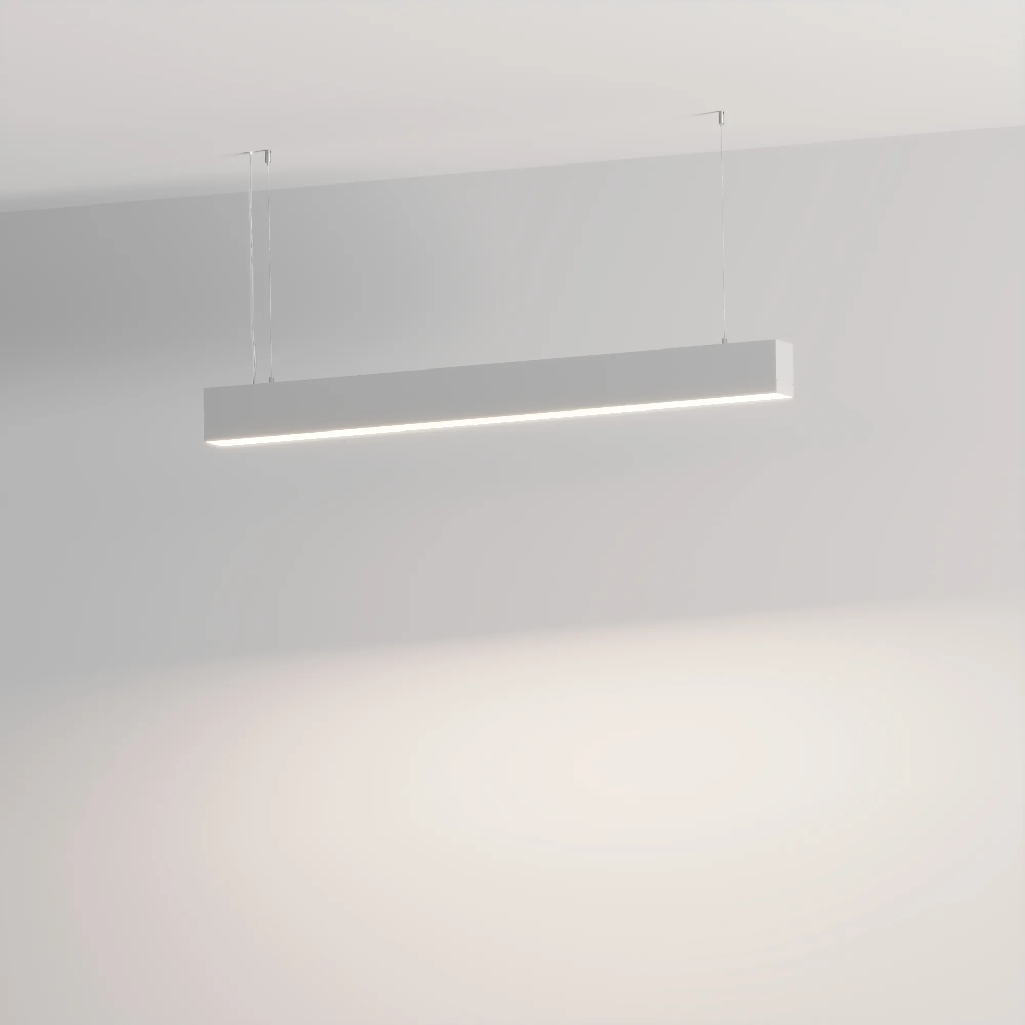 Подвесной/накладной профиль из анодированного алюминия с отсеком для блока питания (33х45 мм) в комплекте с матовым рассеивателем из поликарбоната со светопропусканием 67% идеально подходит для основного освещения и контурной подсветки.