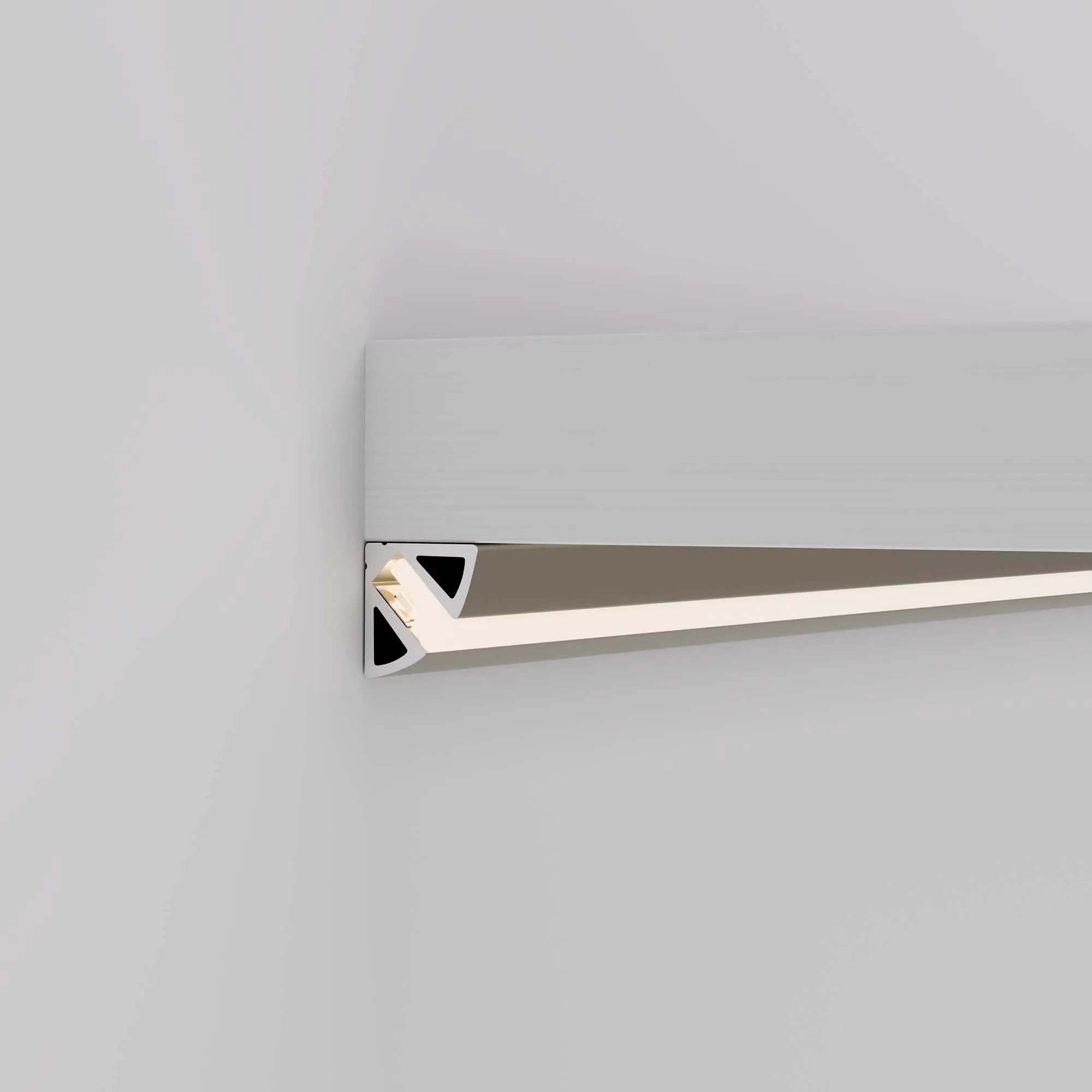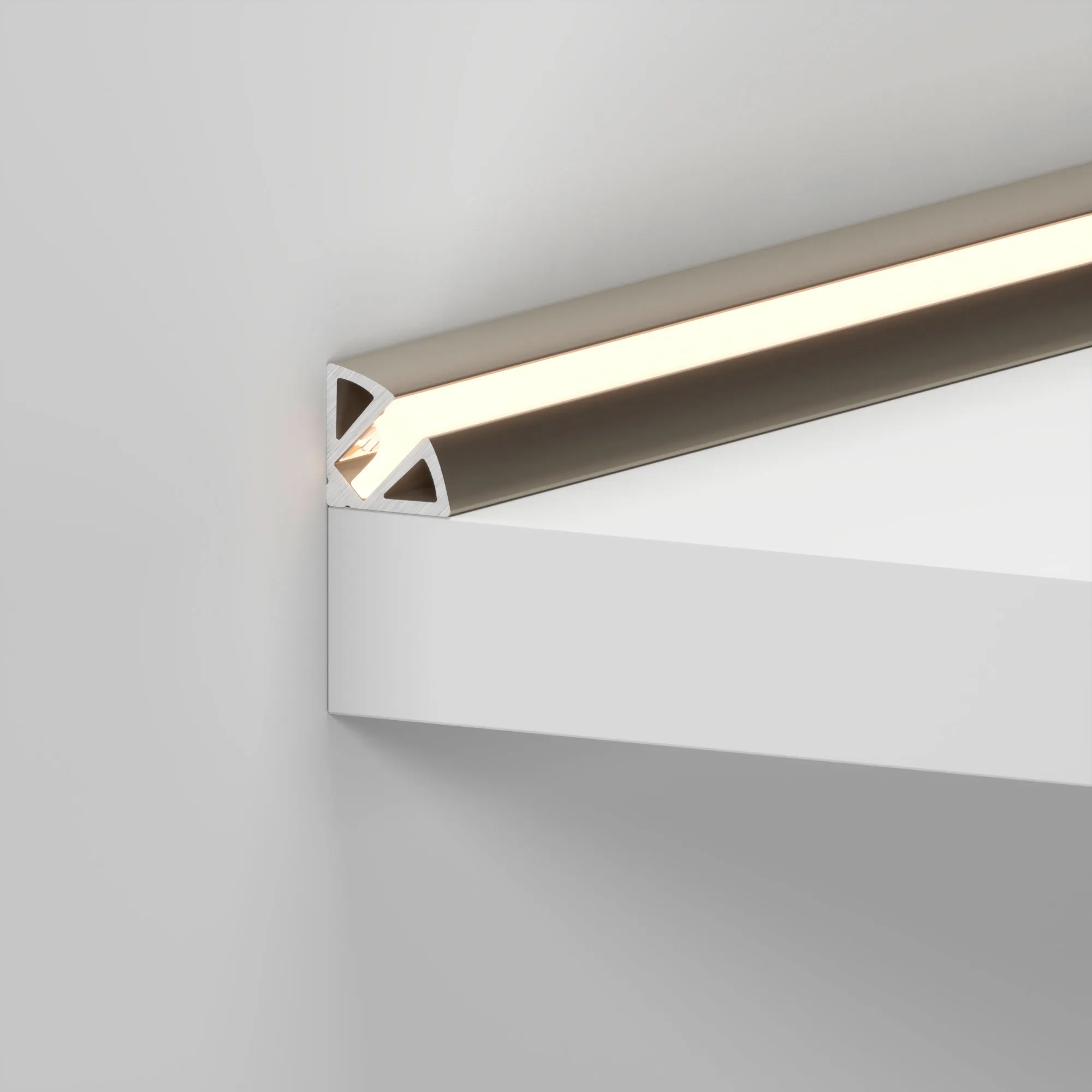 Накладной угловой профиль серо-оливкового цвета из анодированного алюминия для подсветки мебели, пазов, ниш и других элементов интерьера. Габаритные размеры профиля составляют 2000 мм в длину, 11 мм в ширину и 11 мм в высоту. Площадка для установки светодиодных лент позволяет использовать ленту шириной до 5,2 мм и мощностью до 15 Вт/м. Это обеспечивает гибкость в выборе светодиодных лент и создает потрясающие световые решения.