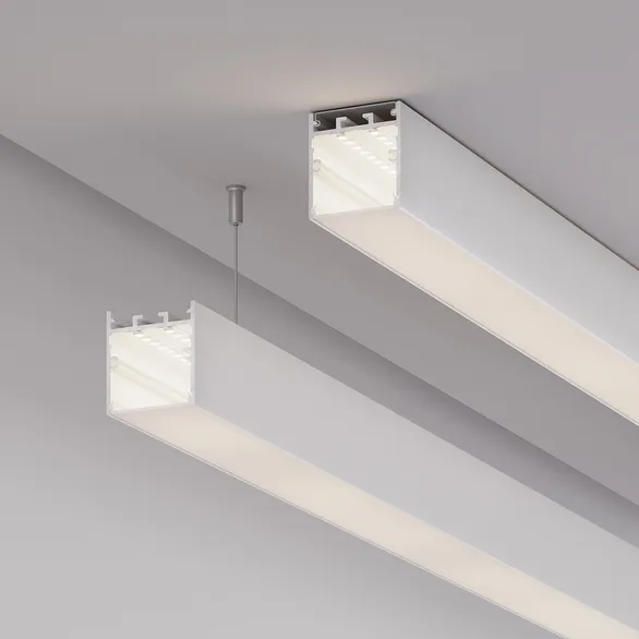 Подвесной/накладной профиль белого цвета из алюминия для основного освещения и контурной подсветки.