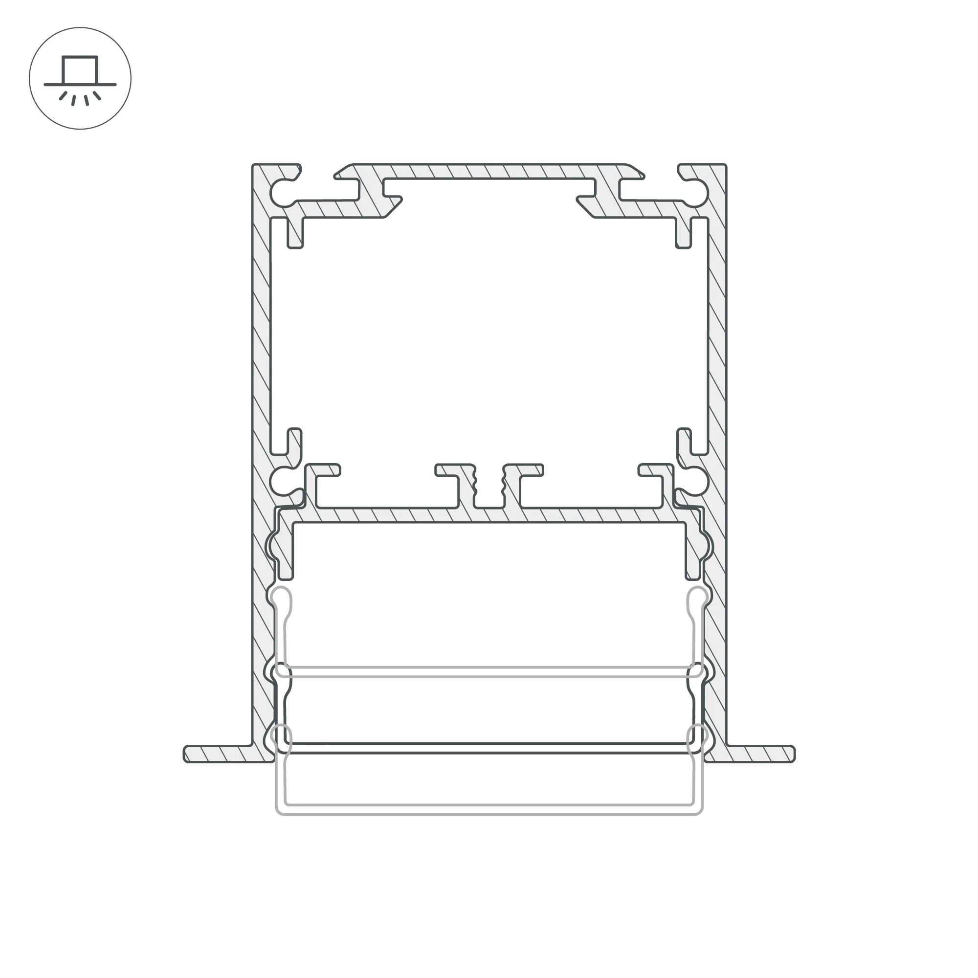 Встраиваемый профиль черного цвета с накладным фланцем из анодированного алюминия для основного освещения и контурной подсветки. Возможность установки экрана на трех уровнях: выступая за края профиля, вровень с профилем и утоплено, позволяет получить разные световые эффекты.