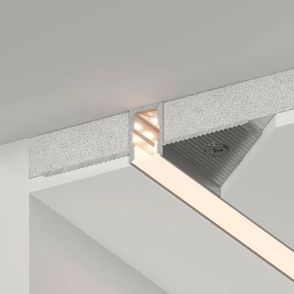 Встраиваемый профиль со скрытым фланцем из анодированного алюминия под строительную отделку для контурной подсветки интерьера. Габаритные размеры профиля составляют 2000 мм в длину, 47,8 мм в ширину и 12 мм в высоту. Площадка для установки светодиодных лент позволяет использовать ленту шириной до 5,2 мм и мощностью до 26,46 Вт/м. Это обеспечивает гибкость в выборе светодиодных лент и создает потрясающие световые решения.