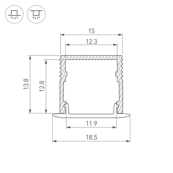 Накладной микро-профиль из анодированного алюминия для подсветки мебели, пазов, ниш и других элементов интерьера. Габаритные размеры профиля составляют 3000 мм в длину, 15 мм в ширину и 13,8 мм в высоту. Площадка для установки светодиодных лент позволяет использовать ленту шириной до 12 мм и мощностью до 15 Вт/м. Это обеспечивает гибкость в выборе светодиодных лент и создает потрясающие световые решения.