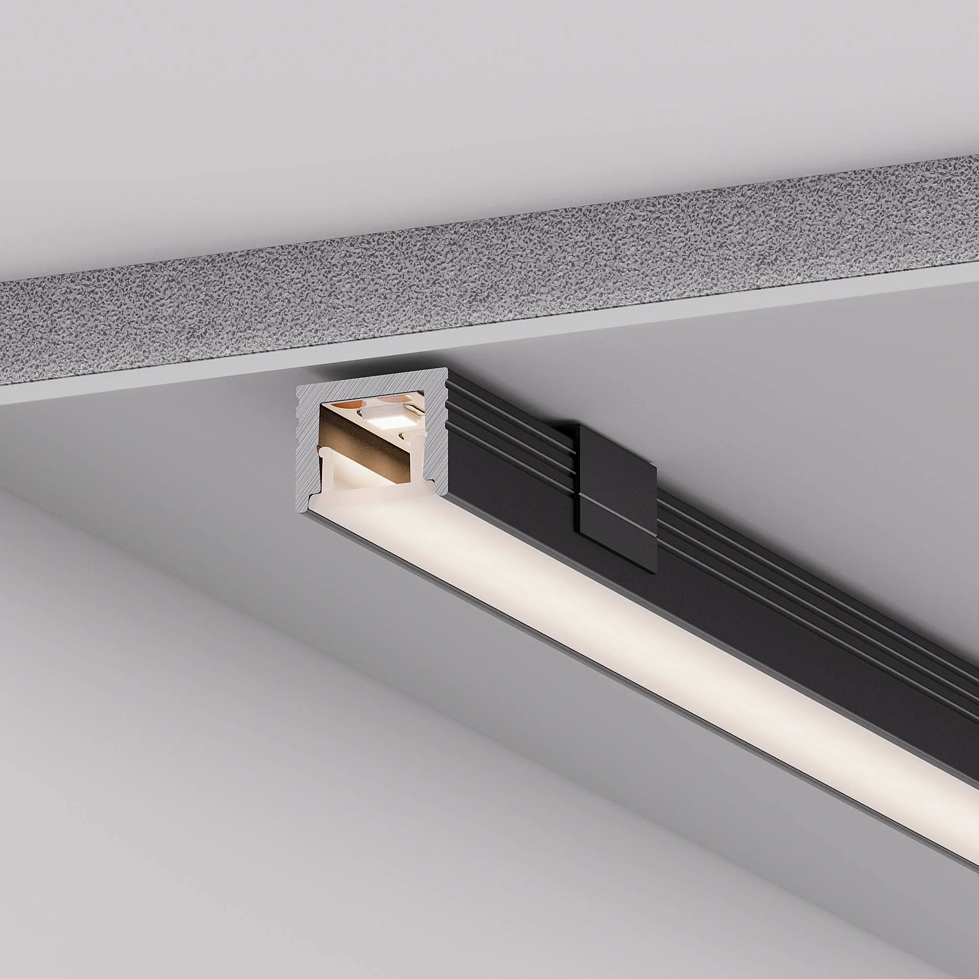 Накладной микро-профиль черного цвета из анодированного алюминия для подсветки мебели, пазов, ниш и других элементов интерьера. Габаритные размеры профиля составляют 2000 мм в длину, 8 мм в ширину и 6 мм в высоту. Площадка для установки светодиодных лент позволяет использовать ленту шириной до 5 мм и мощностью до 7,4 Вт/м. Это обеспечивает гибкость в выборе светодиодных лент и создает потрясающие световые решения.