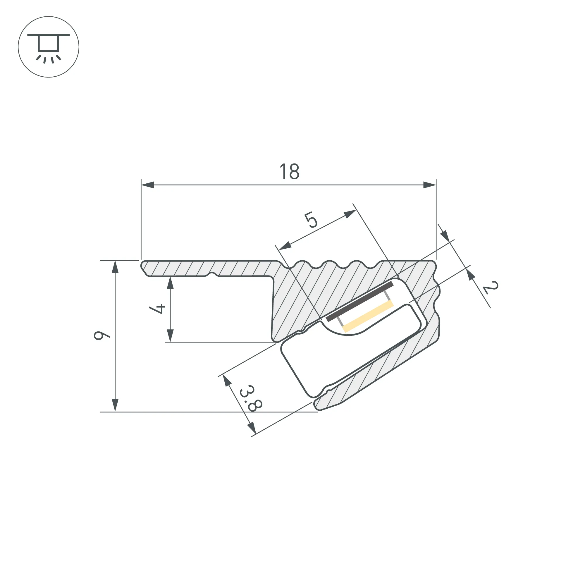 Алюминиевый анодированный профиль для светодиодных лент и линеек. Цвет - серо-оливковый. Габаритные размеры (L×W×H): 2000x18x9 мм. Ширина площадки для ленты 5 мм. Экраны и заглушки приобретаются отдельно. Цена за 1 метр.