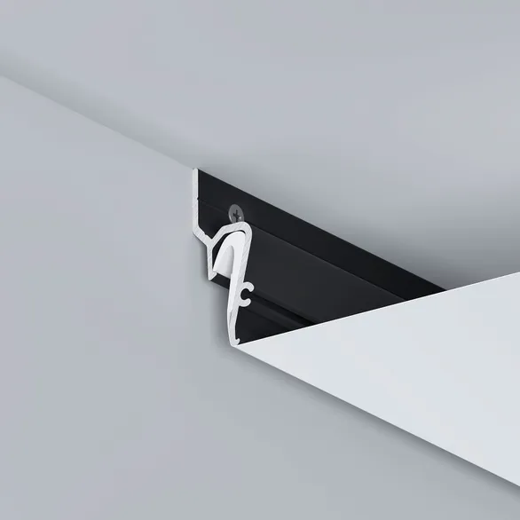Накладной алюминиевый профиль черного цвета для монтажа натяжного потолка с теневым зазором между стеной и потолком 8мм.
