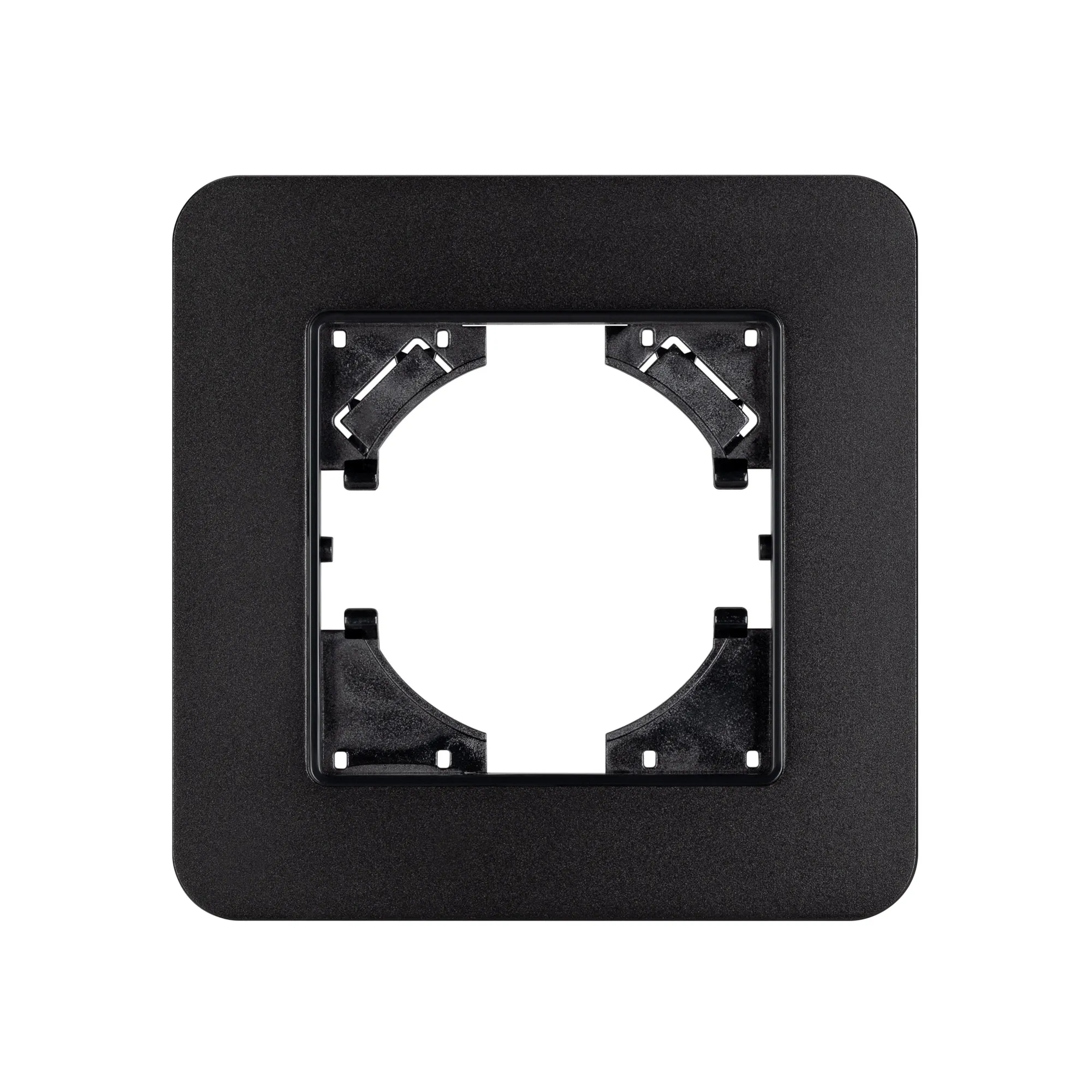 Рамка из серии AKIRY представляет собой комбинацию в виде основы из тугоплавкого пластика и 3-х миллиметровой накладки из алюминиевого сплава. Корпус выполнен в черном цвете и поверхностью с Soft-Touch покрытием высотой 7мм, что позволяет гармонично встроить в интерьер любого современного дизайн-проекта. Невидимая часть из тугоплавкого пластика, для надежной фиксации механизма. Грани алюминиевой накладки аккуратно обработаны и отшлифованы, чтобы обезопасить пользователя при установке и демонтаже.