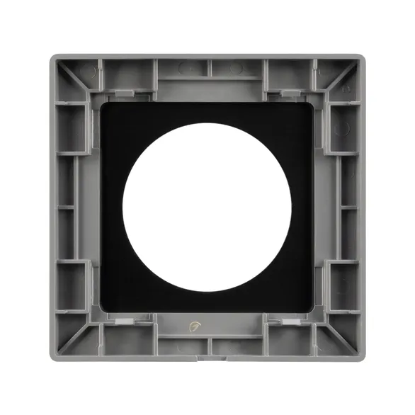 Рамка алюминиевая на 1 пост, под встраиваемый механизм. Вырез под функциональную часть - круг. Цвет - серый. Ориентации монтажа - горизонтальная и вертикальная.