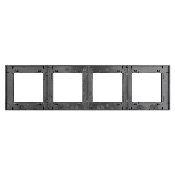 Рамка алюминиевая на 4 пост, под встраиваемый механизм (квадрат). Цвет - черный. Ориентации монтажа - горизонтальная.
