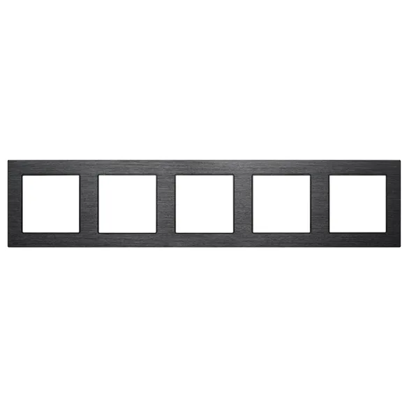 Рамка алюминиевая на 5 пост, под встраиваемый механизм (квадрат). Цвет - черный. Ориентации монтажа - горизонтальная.